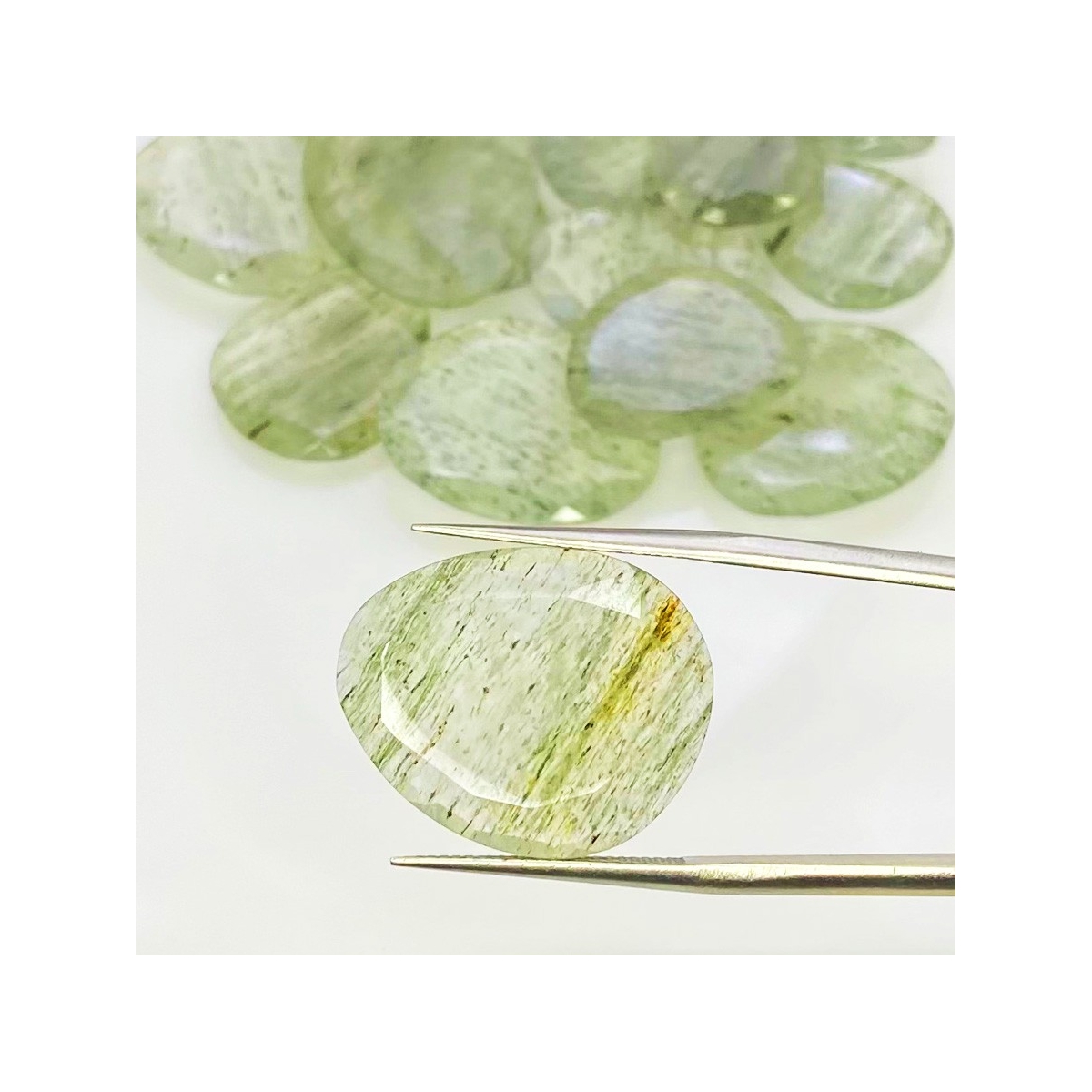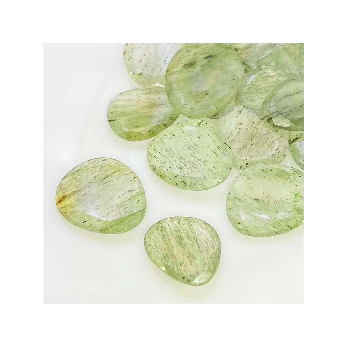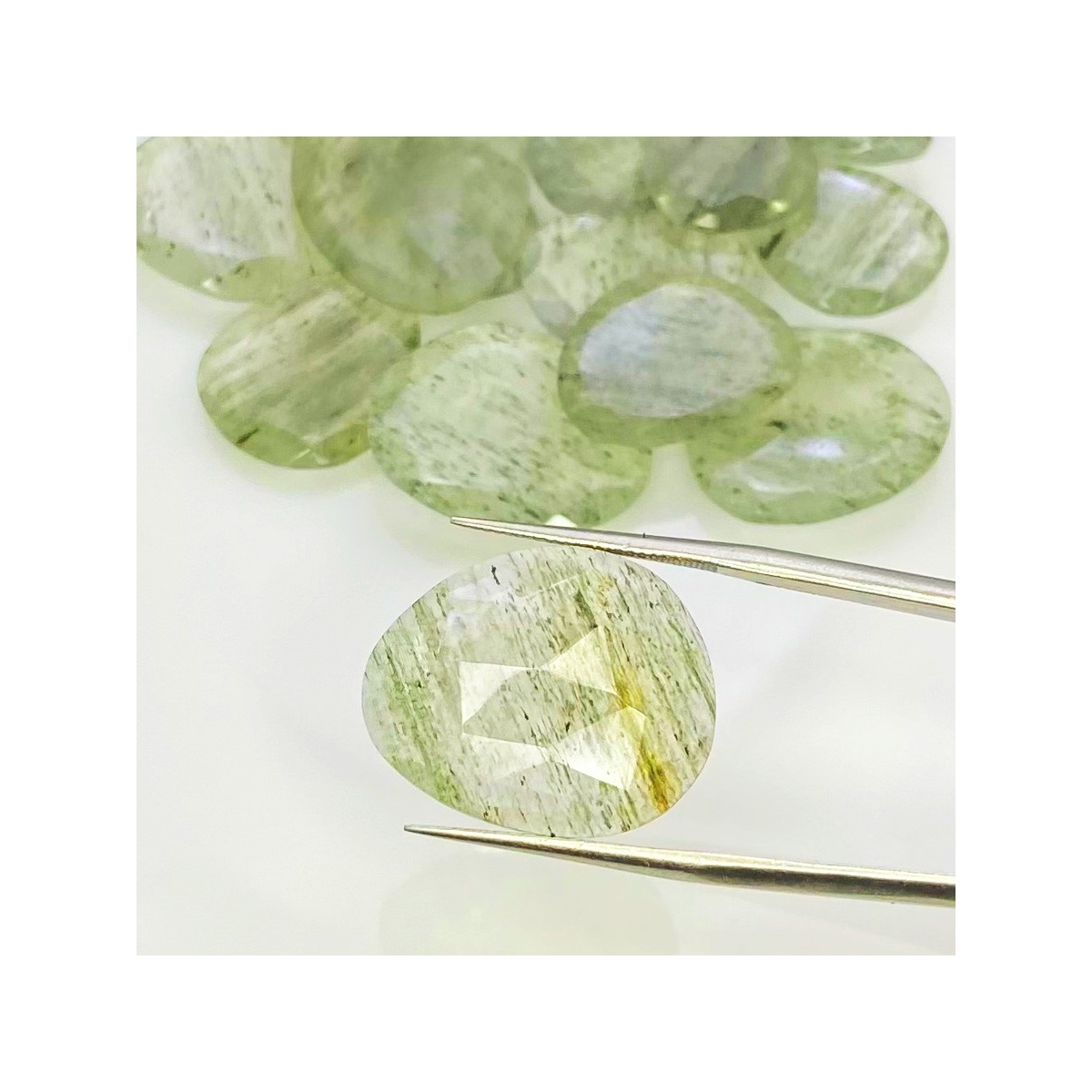 Buy This "AA" Grade 13.5-23mm Rose Cut Irregular Shape Natural Green Rutile (Un-Treated) Gemstones Parcel. You Will Receive 16 Pcs. With a Total Weight of 110.95 Carat. This Green Rutile Stone is Originated From Brazil and Masterfully Handcrafted by The Experienced Artisans of Jaipur (India).