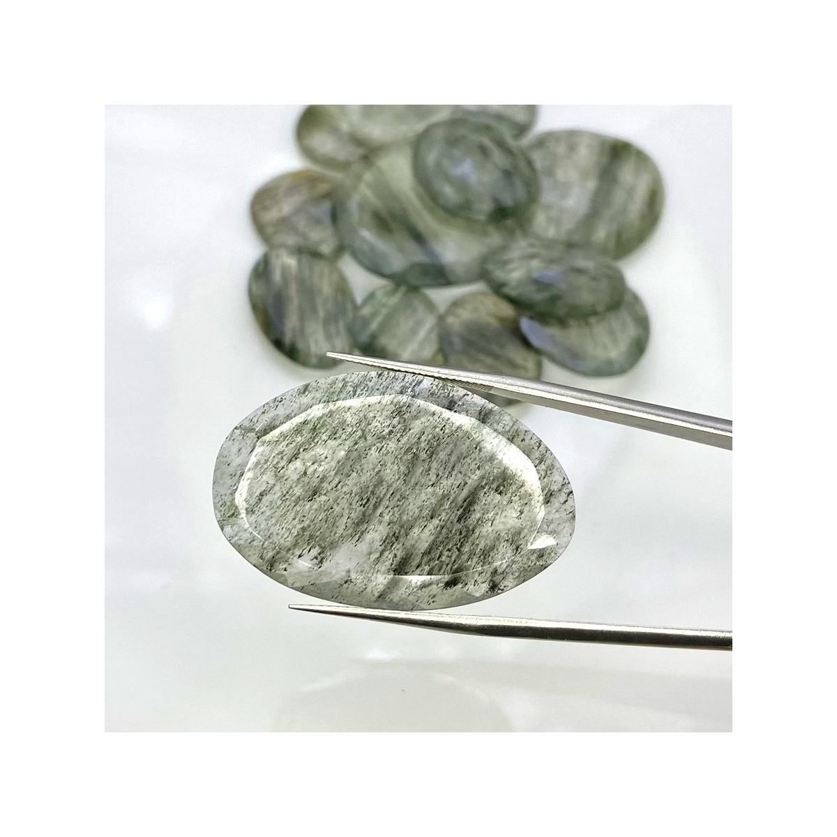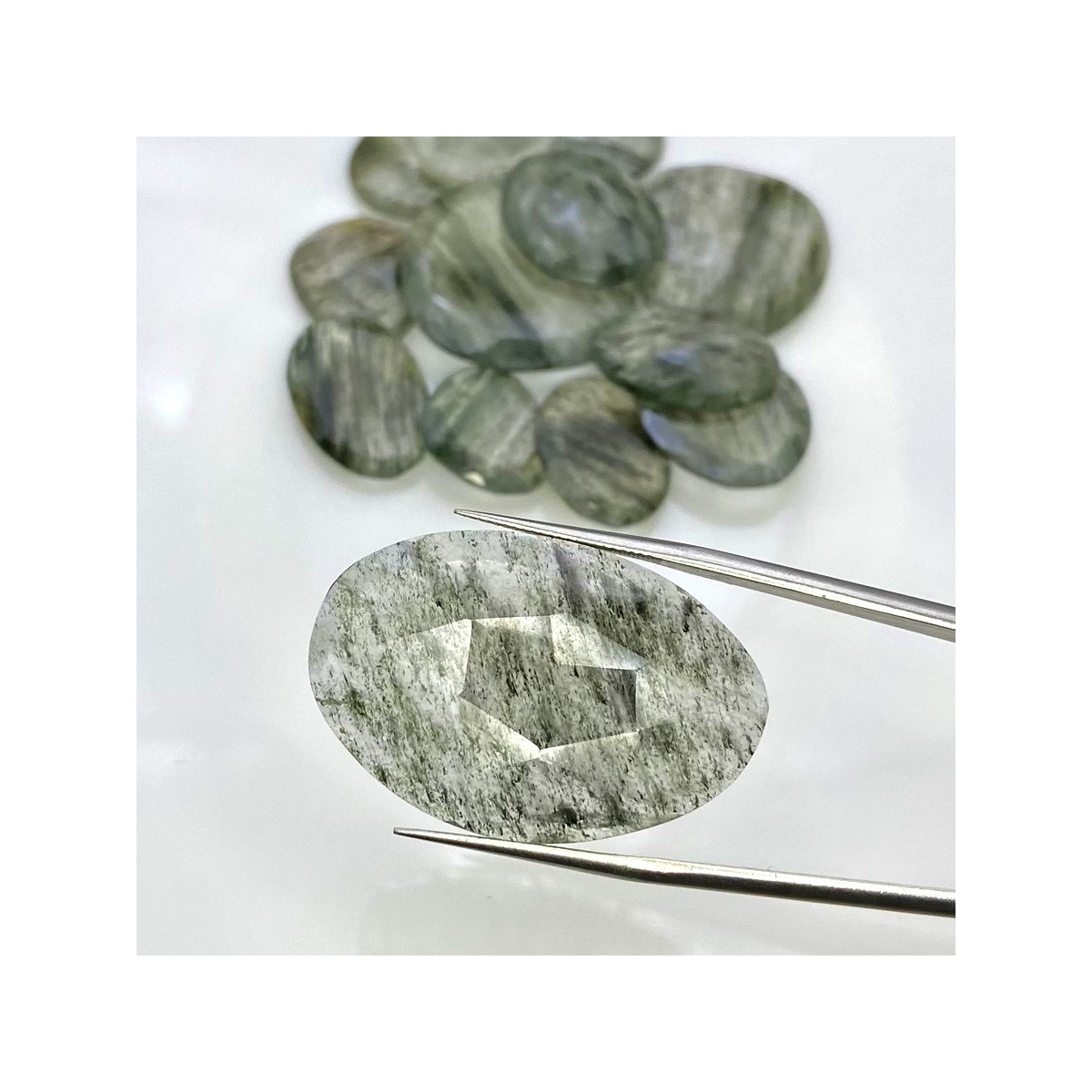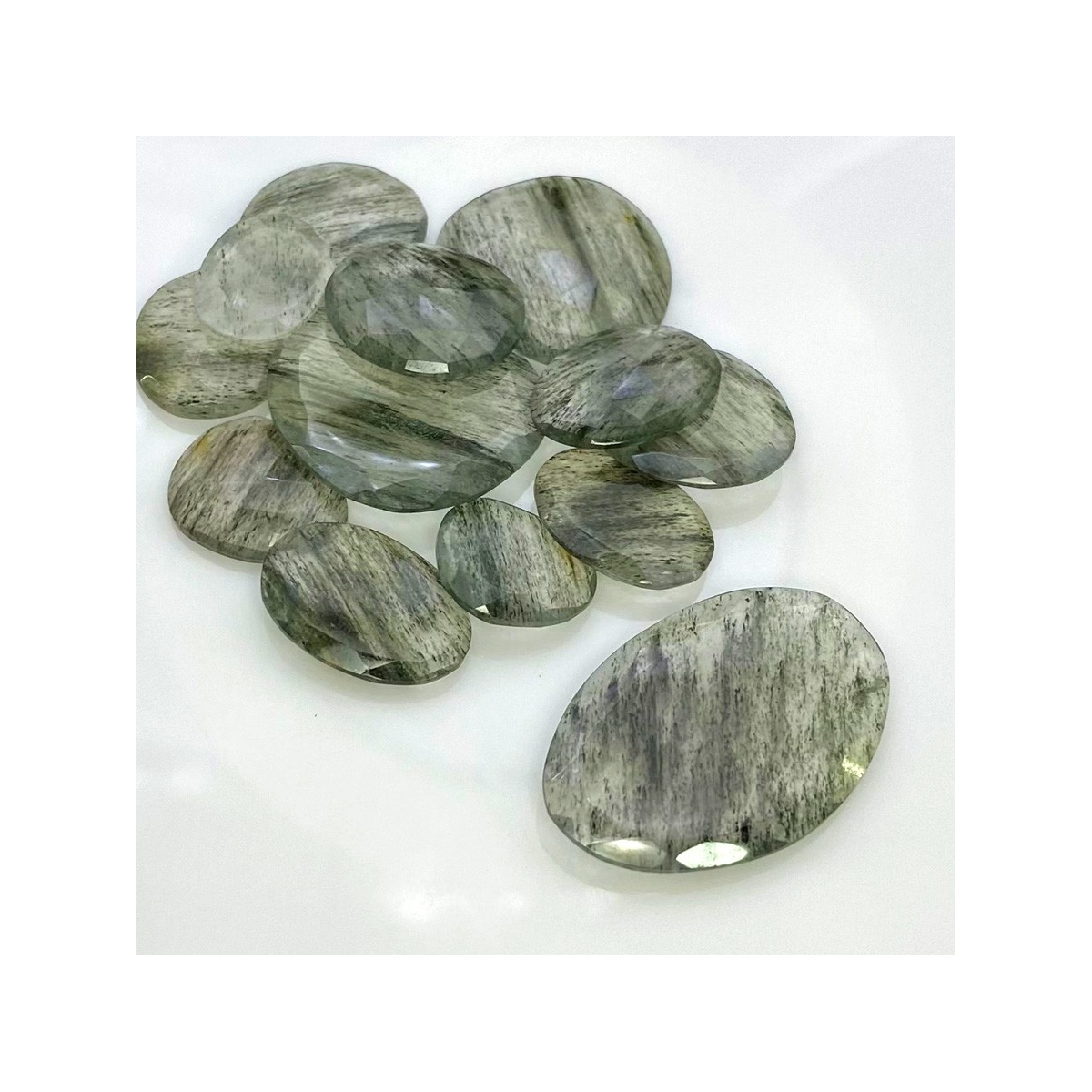 Buy This "AA" Grade 15.5-34mm Rose Cut Irregular Shape Natural Green Rutile (Un-Treated) Gemstones Parcel. You Will Receive 13 Pcs. With a Total Weight of 134 Carat. This Green Rutile Stone is Originated From Brazil and Masterfully Handcrafted by The Experienced Artisans of Jaipur (India).