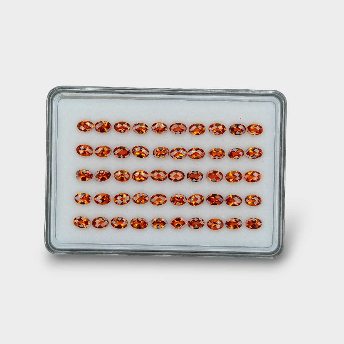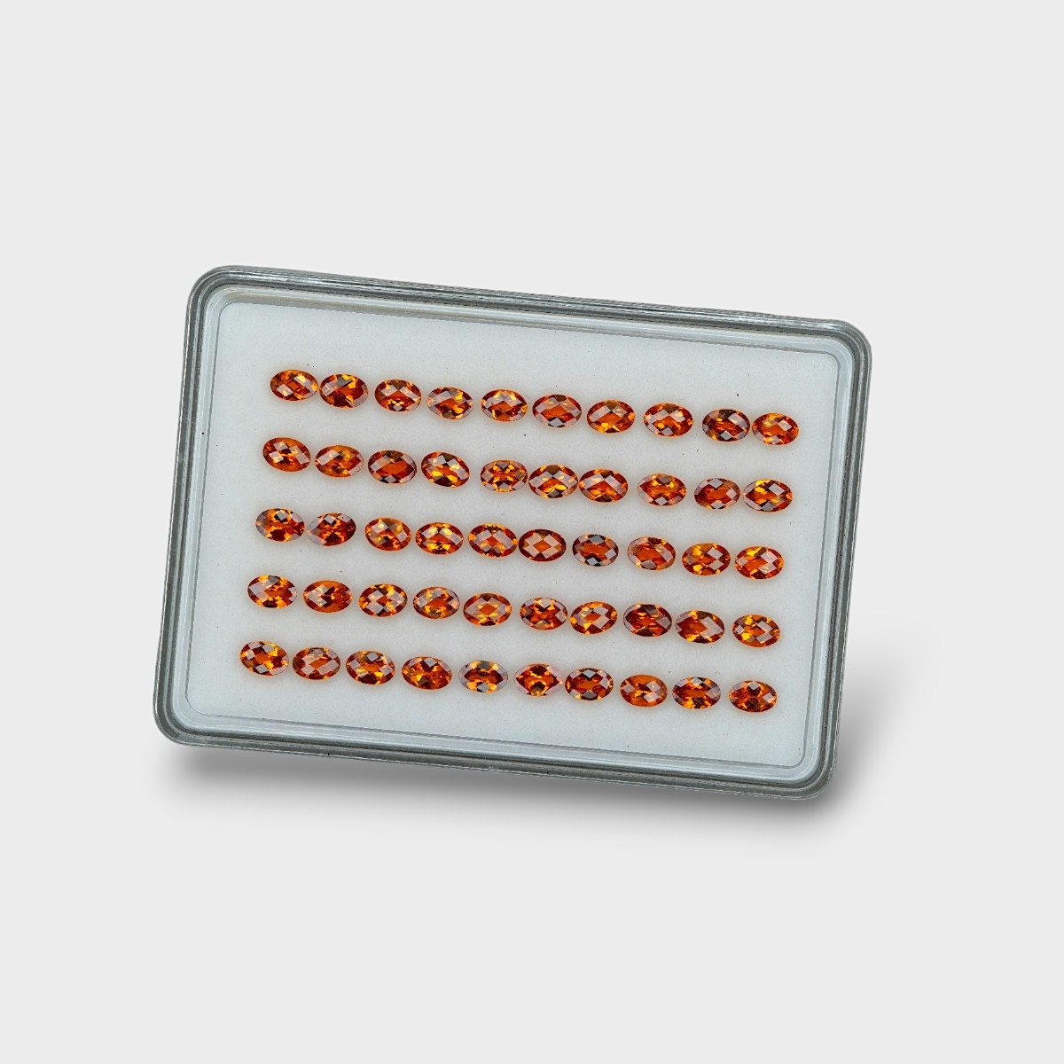 24.03 Cts. Hessonite Garnet 6x4mm Checkerboard Oval Shape AAA Grade Gemstones Parcel - Total 50 Pcs.