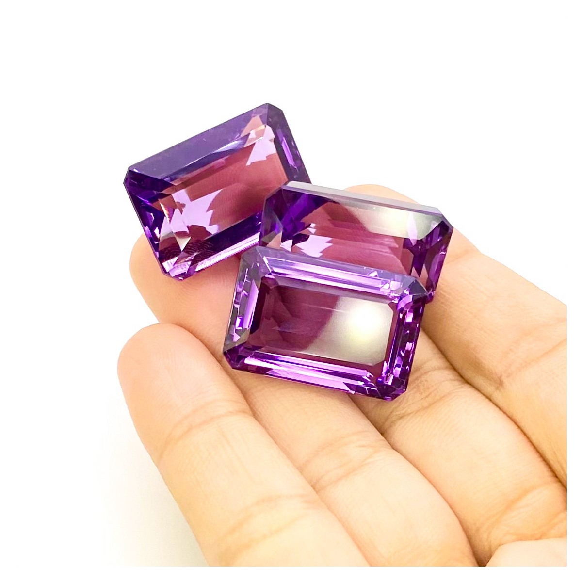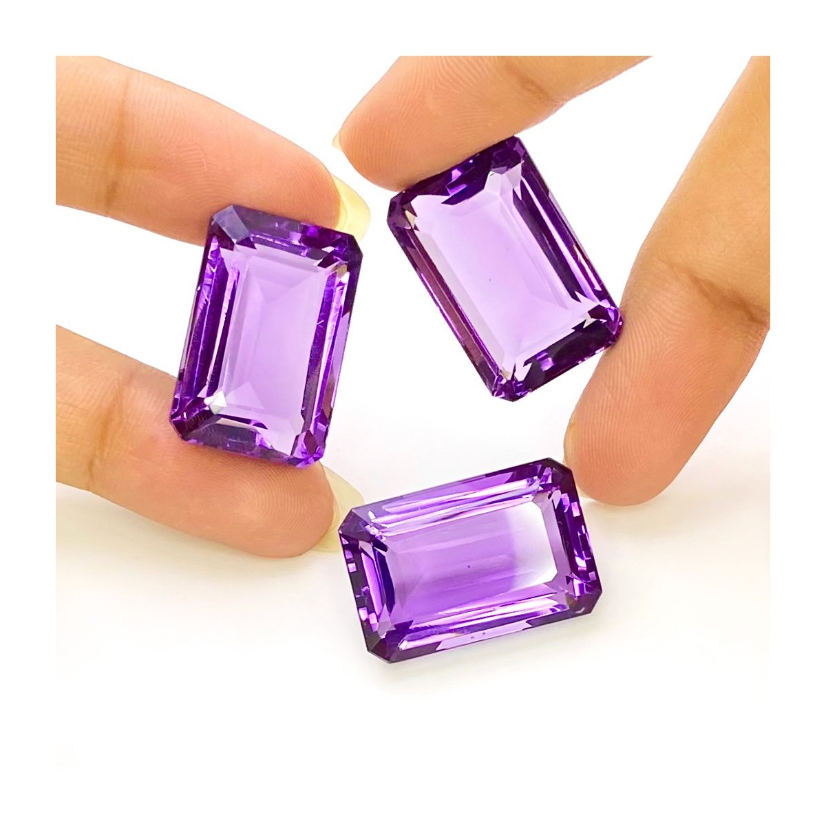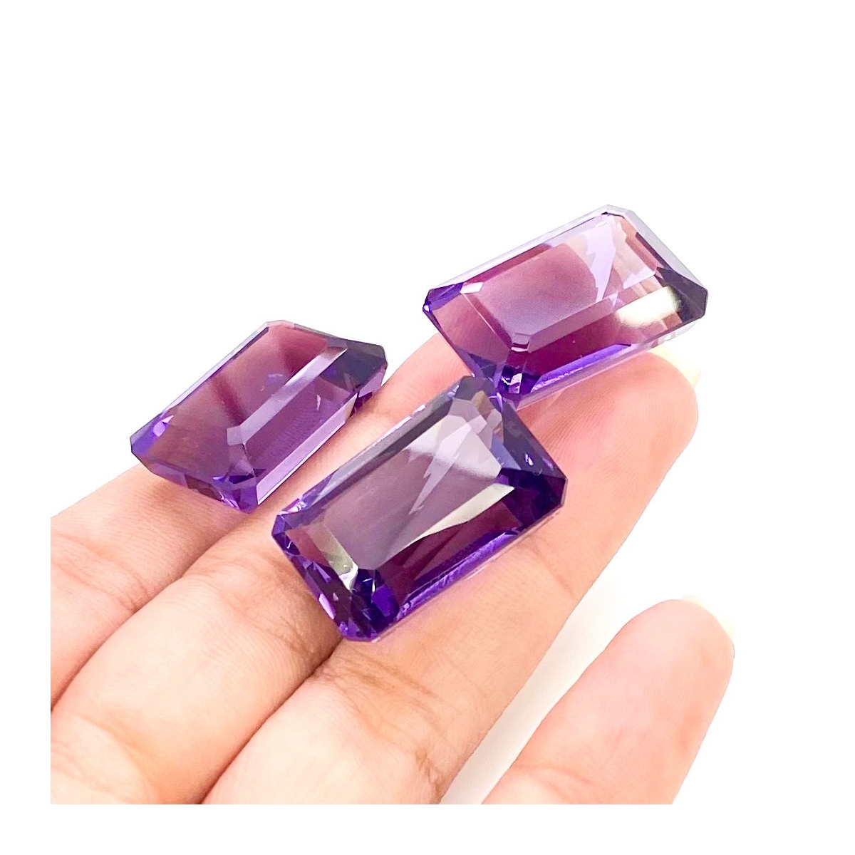 Buy This "AAA" Grade 23x15mm Step Cut Octagon Shape Created Hydro Dark Amethyst (Hydrothermal) Gemstones Parcel. You Will Receive 3 Pcs. With a Total Weight of 93.3 Carat. This Hydro Dark Amethyst Stone is Originated From Russia and Masterfully Handcrafted by The Experienced Artisans of Jaipur (India).