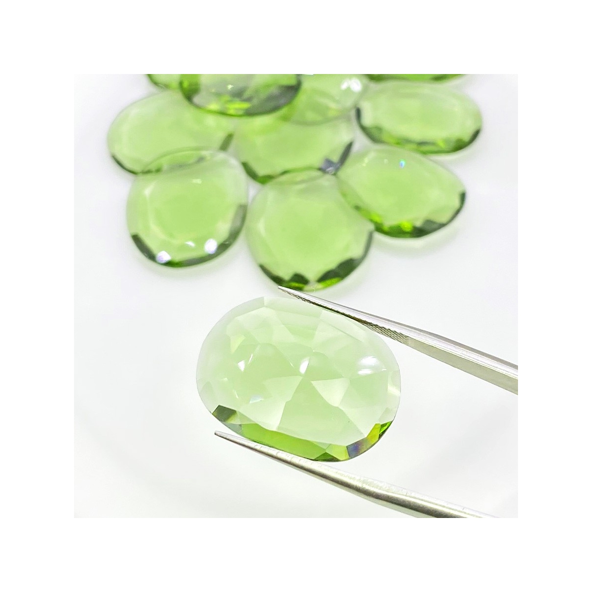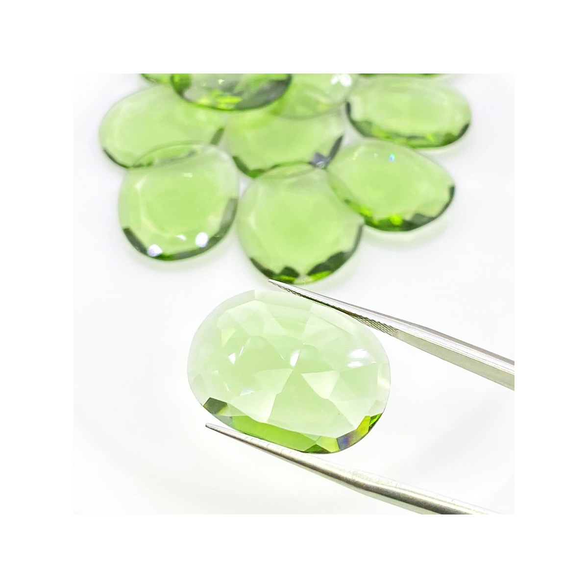 Buy This "AAA" Grade 20-23mm Rose Cut Irregular Shape Natural Hydro Green Tourmaline (Heated) Gemstones Parcel. You Will Receive 12 Pcs. With a Total Weight of 105.90 Carats. This Hydro Green Tourmaline Stone is Originated From Africa and Masterfully Handcrafted by The Experienced Artisans of Jaipur (India).