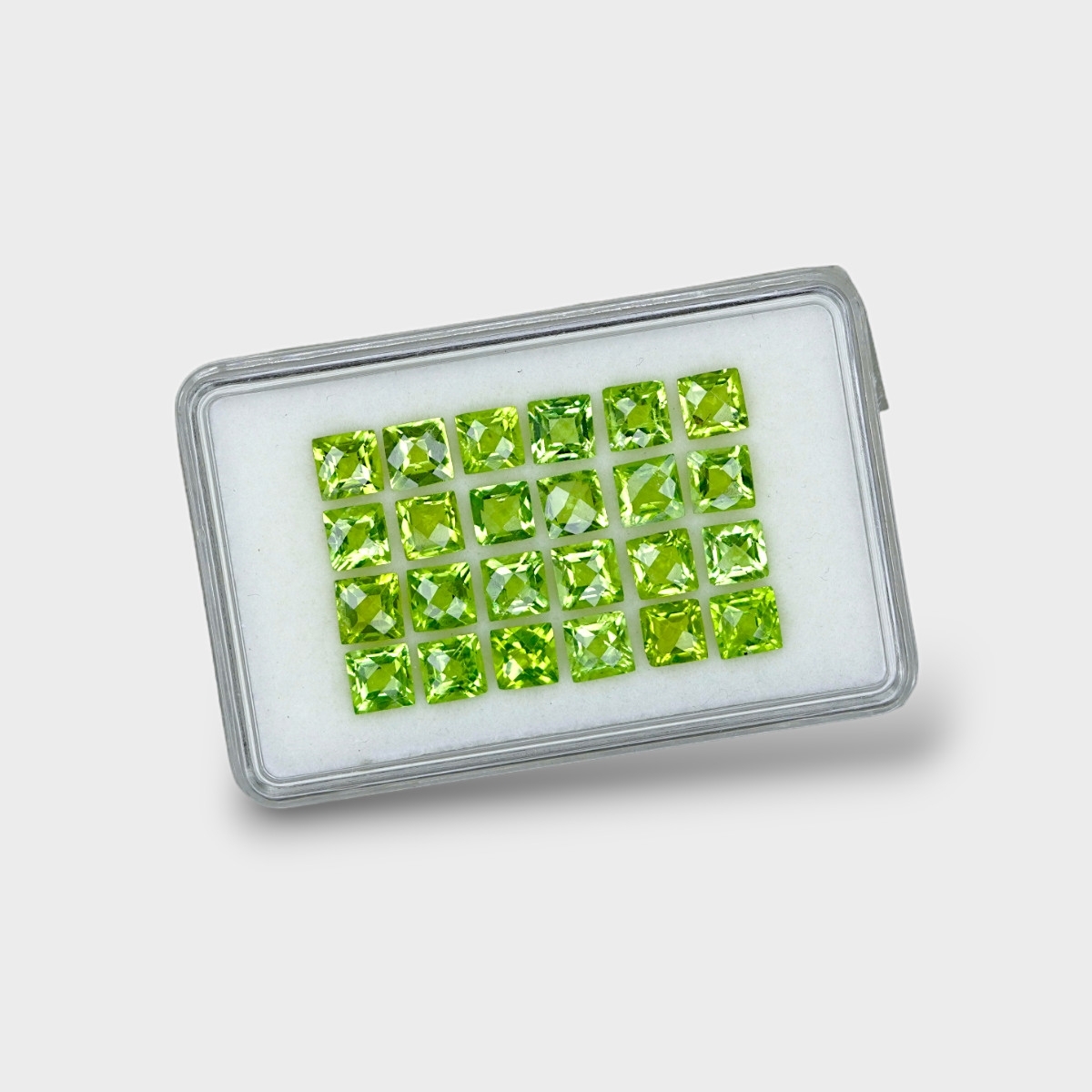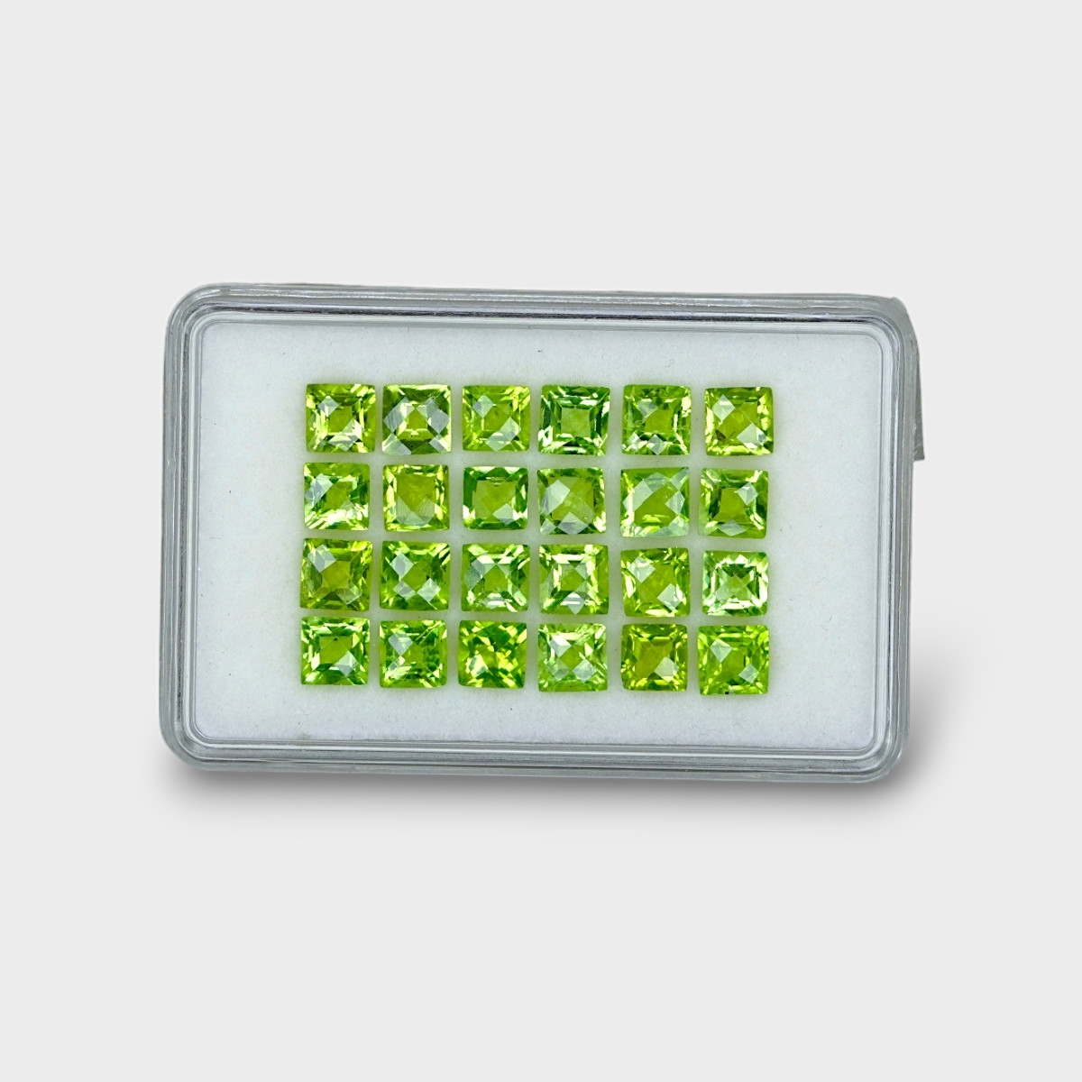 17.34 Cts. Peridot 5mm Checkerboard Square Shape AA+ Grade Gemstones Parcel - Total 24 Pc.