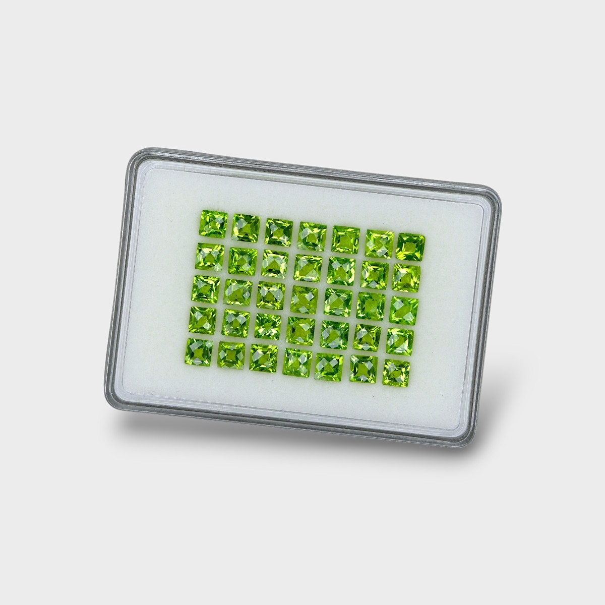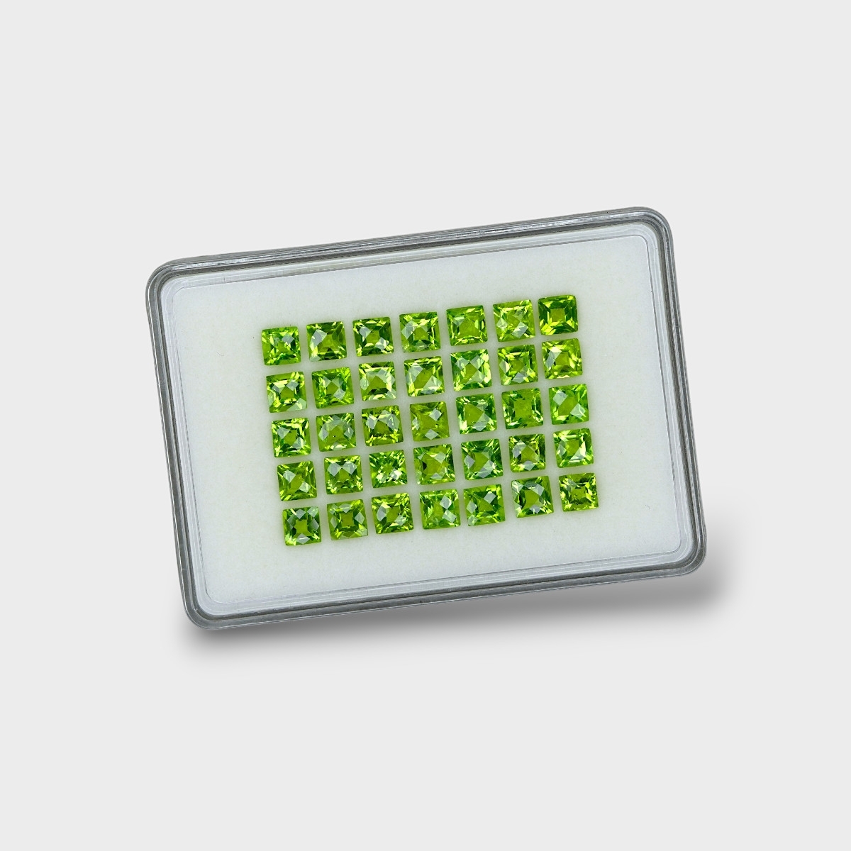 40.77 Cts. Peridot 6mm Checkerboard Square Shape AA+ Grade Gemstones Parcel - Total 35 Pc.