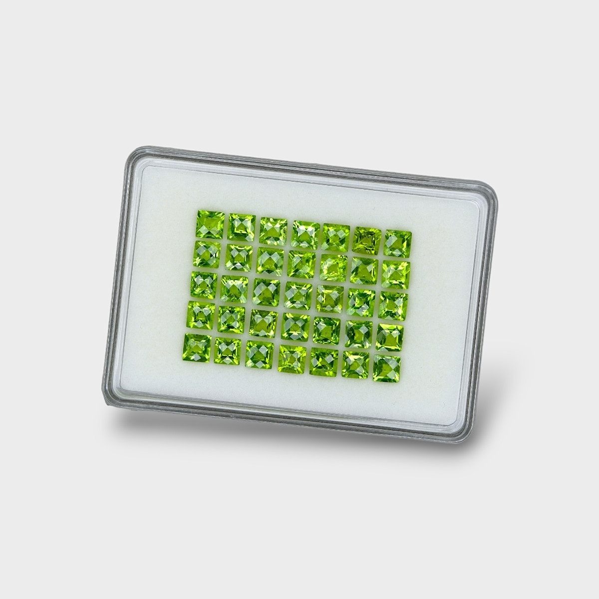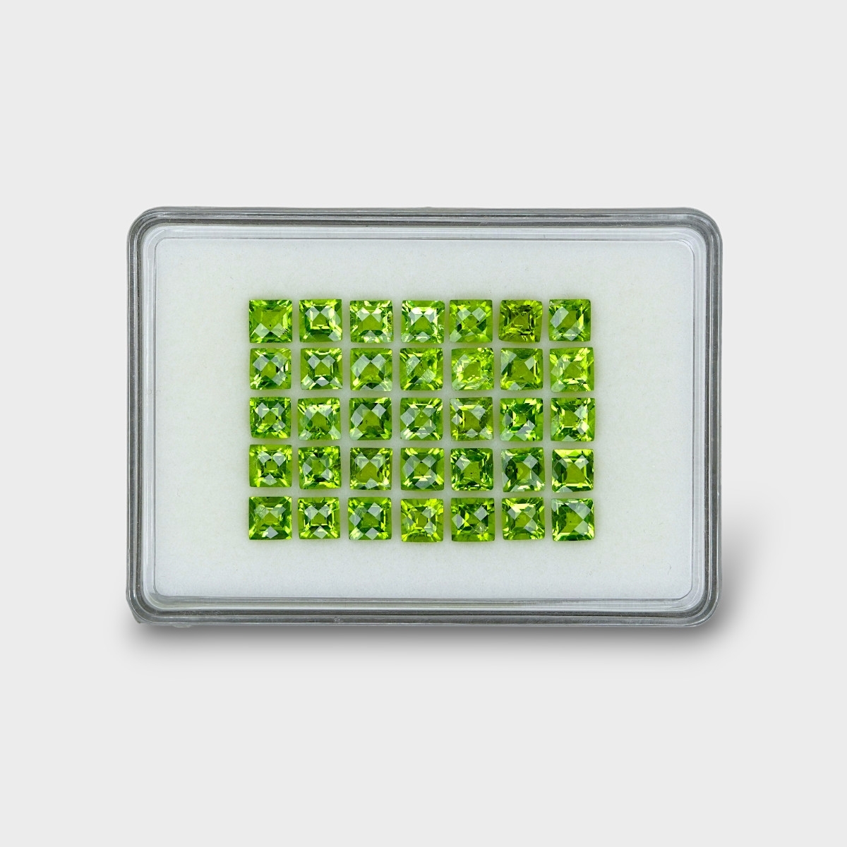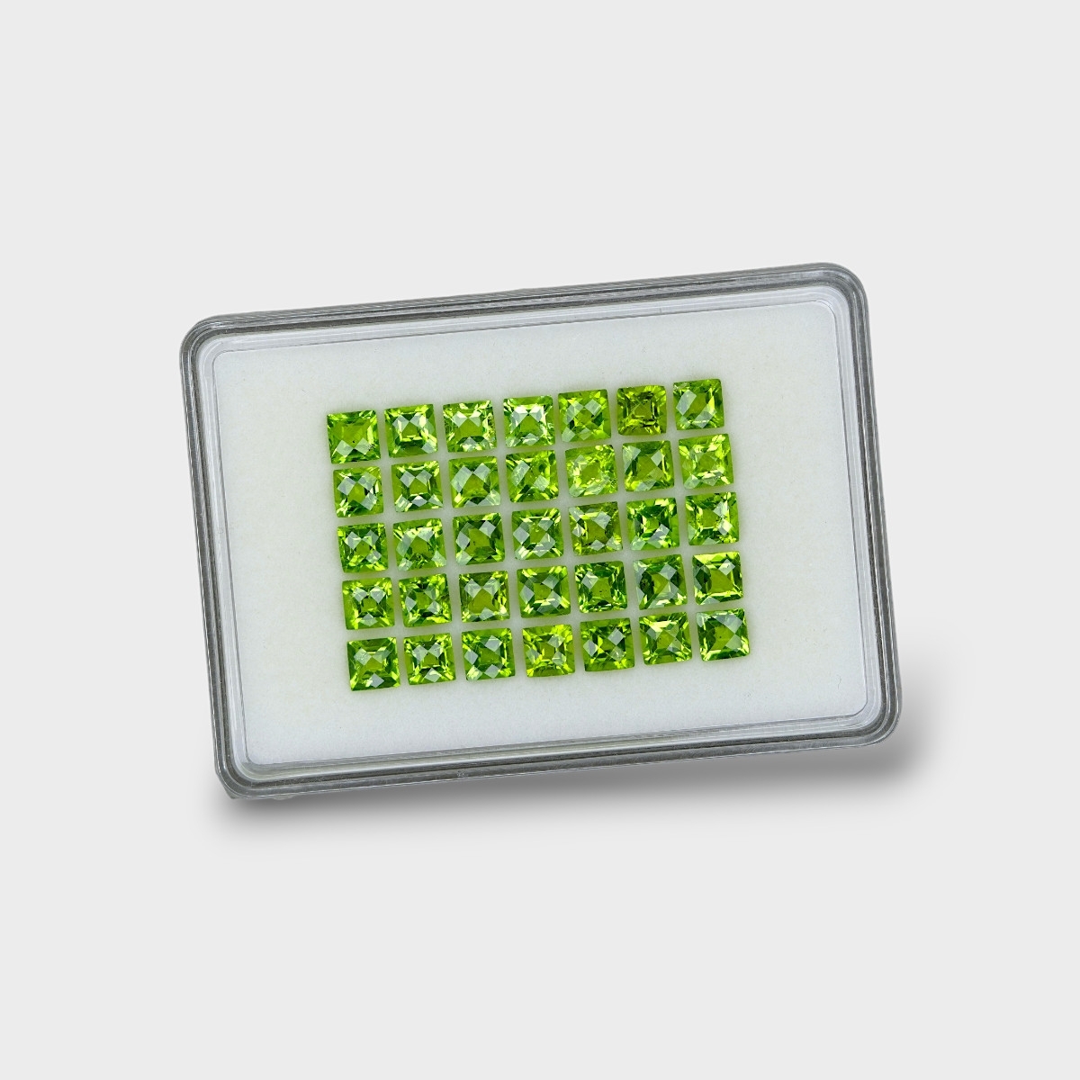 42.96 Cts. Peridot 6mm Checkerboard Square Shape AA+ Grade Gemstones Parcel - Total 35 Pc.
