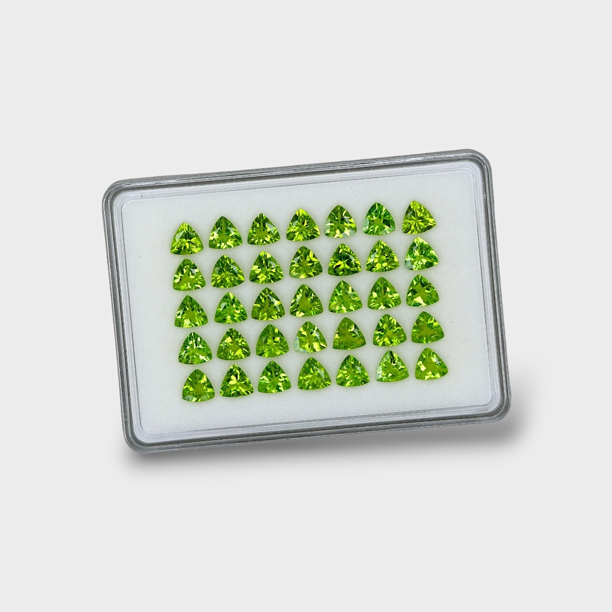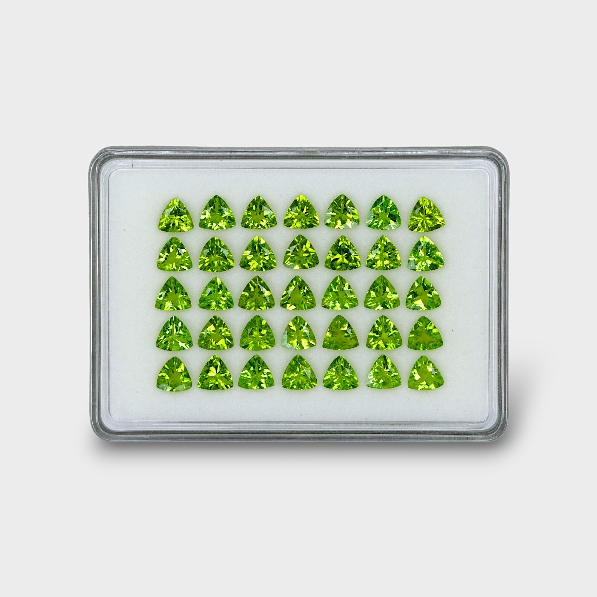 36.92 Cts. Peridot 7mm Faceted Trillion Shape AA+ Grade Gemstones Parcel - Total 35 Pc.