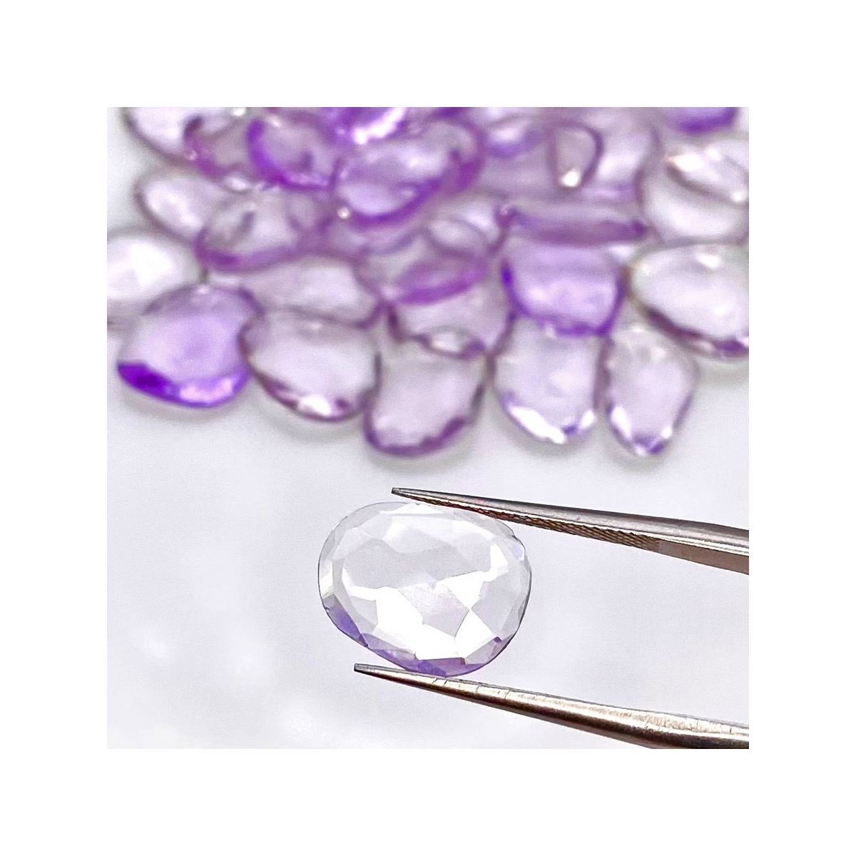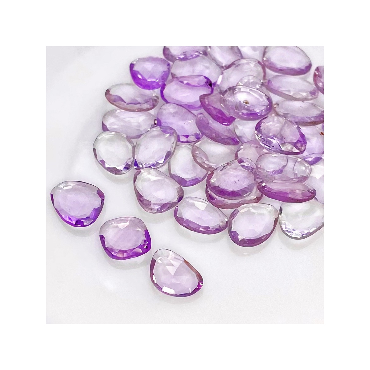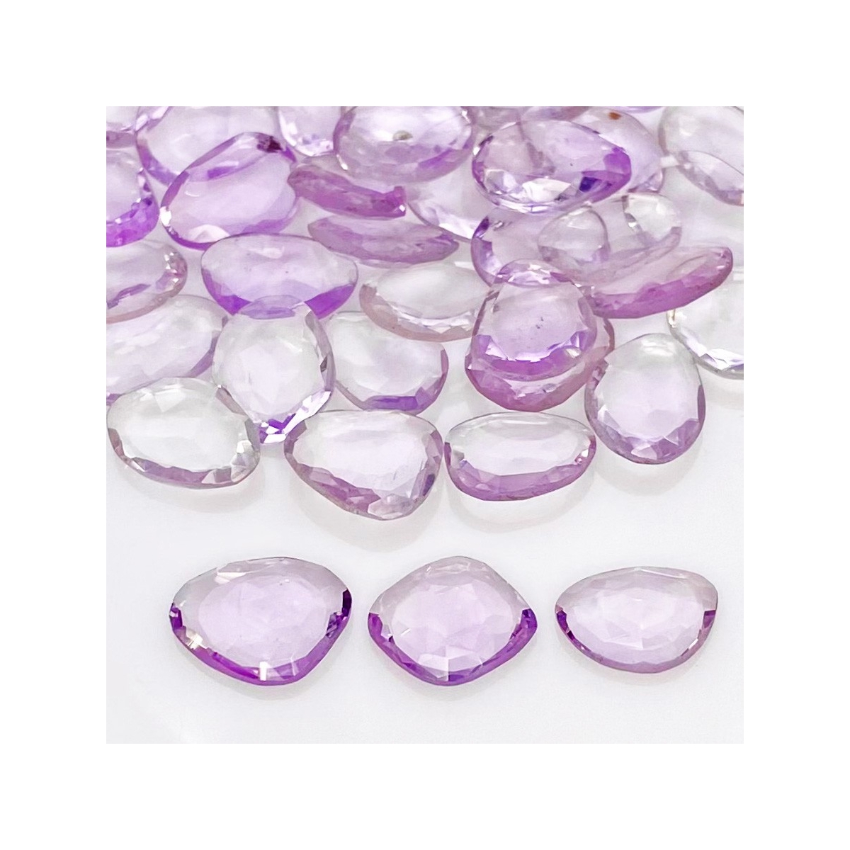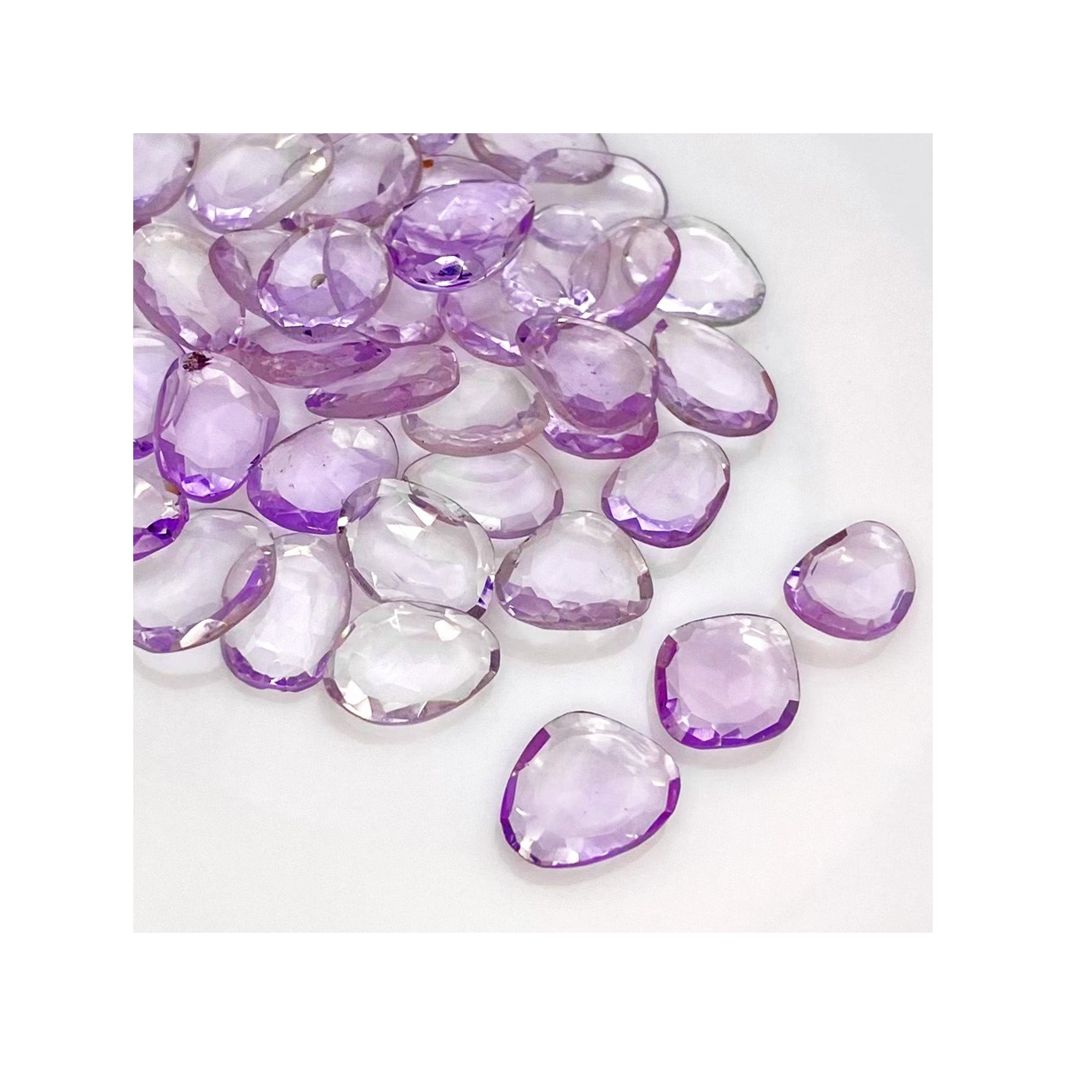 Buy This "AA" Grade 9-13mm Rose Cut Irregular Shape Natural Pink Amethyst (Heated) Gemstones Parcel. You Will Receive 40 Pcs. With a Total Weight of 80.40 Cts.. This Pink Amethyst Stone is Originated From Brazil and Masterfully Handcrafted by The Experienced Artisans of Jaipur (India).