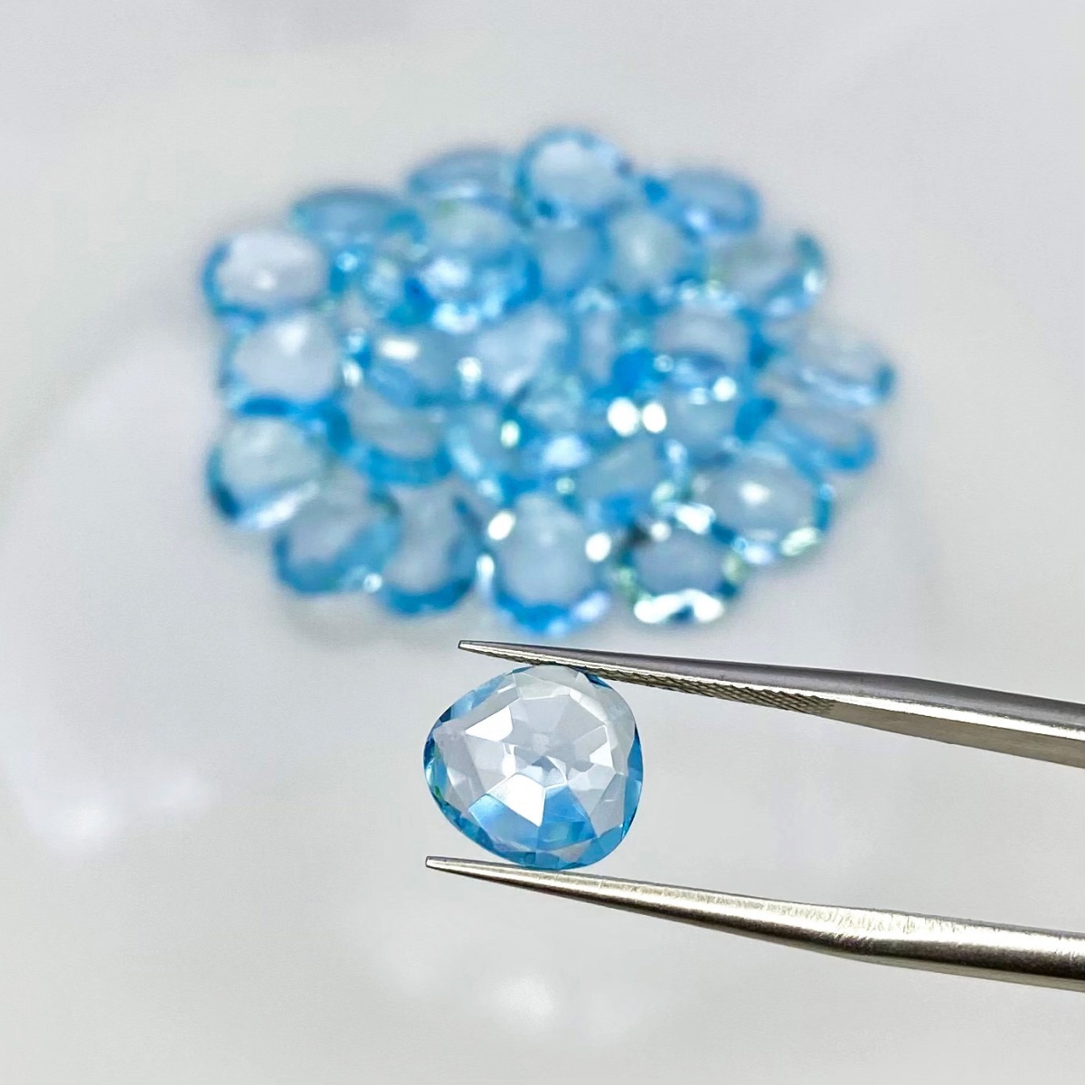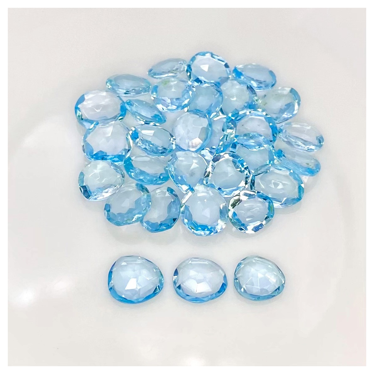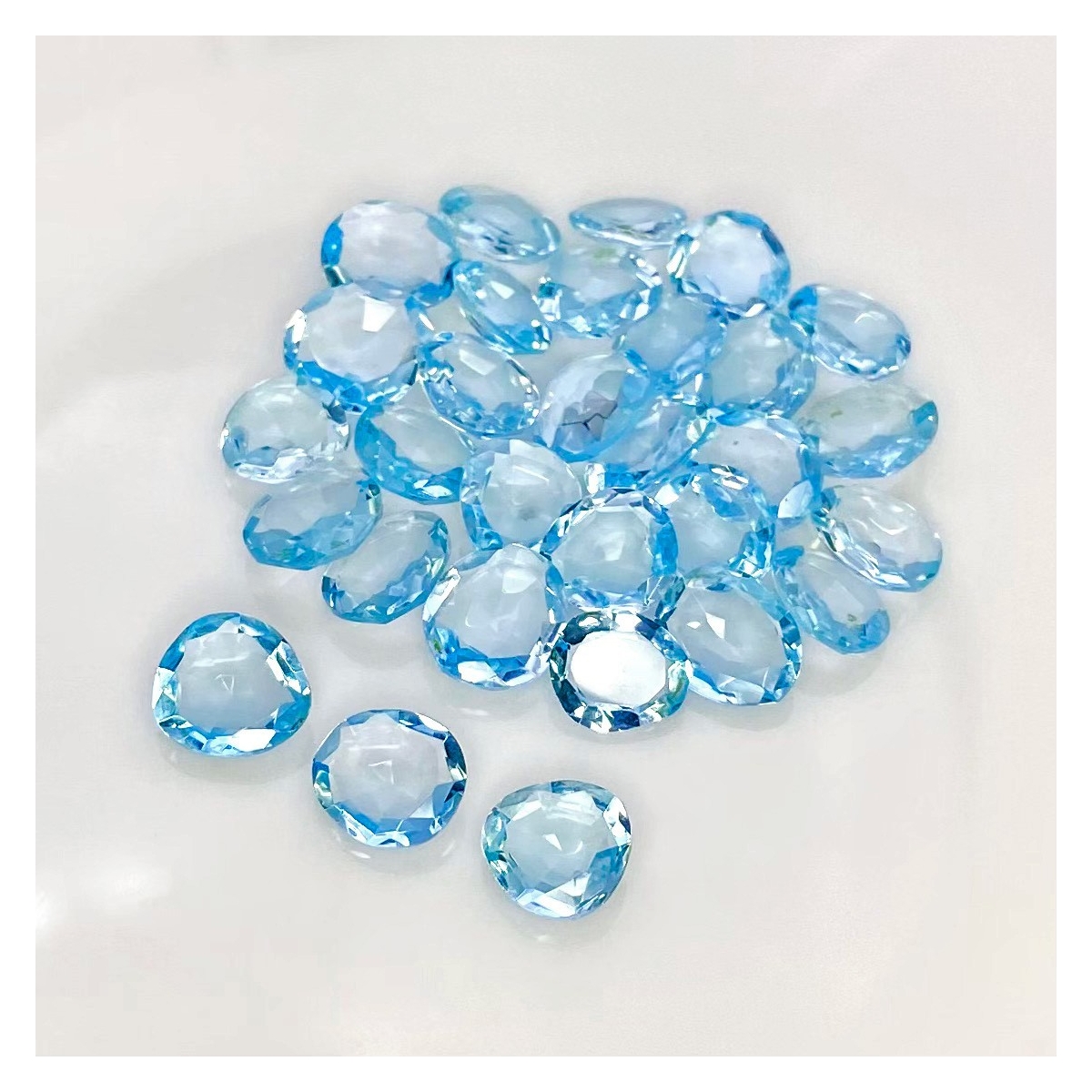 Buy This "AAA" Grade 8x6-9.5x8.5mm Rose Cut Irregular Shape Natural Sky Blue Topaz (Irradiated) Gemstones Parcel. You Will Receive 30 Pcs. With a Total Weight of 55.15 Carat. This Sky Blue Topaz Stone is Originated From Brazil and Masterfully Handcrafted by The Experienced Artisans of Jaipur (India).