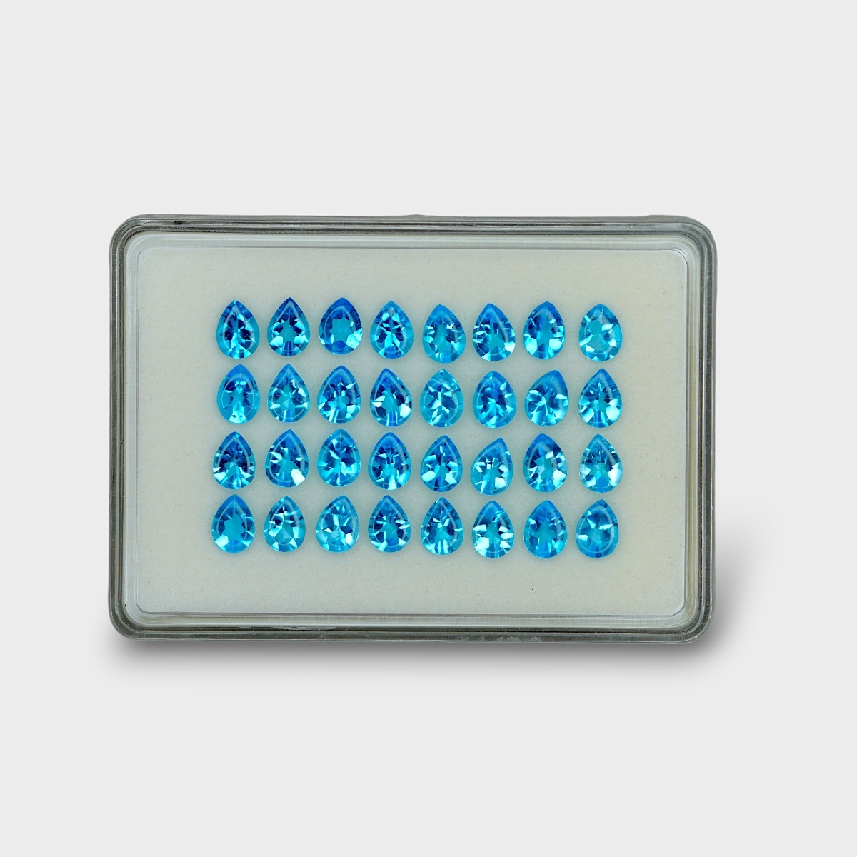 39.49 Cts. Swiss Blue Topaz 8x6mm Buff Top Pear Shape AAA Grade Gemstones Parcel - Total 32 Pc.