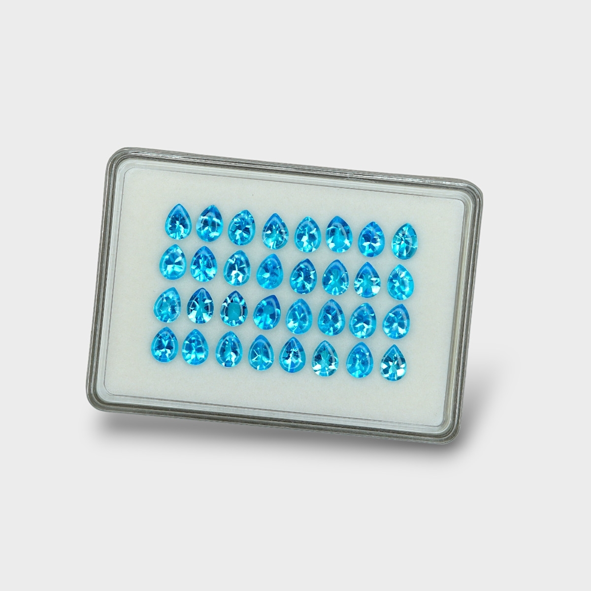 43.18 Cts. Swiss Blue Topaz 8x6mm Buff Top Pear Shape AAA Grade Gemstones Parcel - Total 32 Pc.