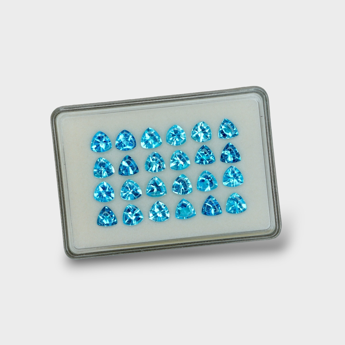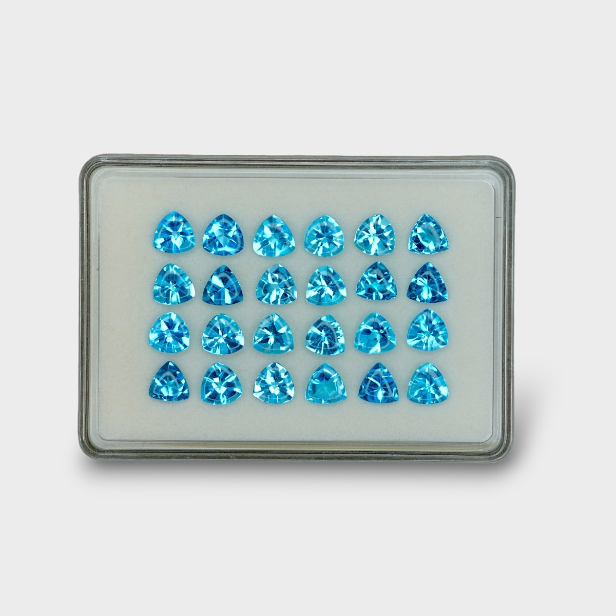 49.32 Cts. Swiss Blue Topaz 8mm Buff Top Trillion Shape AAA Grade Gemstones Parcel - Total 24 Pc.