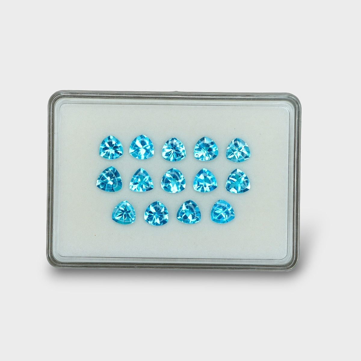 29.7 Cts. Swiss Blue Topaz 8mm Buff Top Trillion Shape AAA Grade Gemstones Parcel - Total 14 Pc.