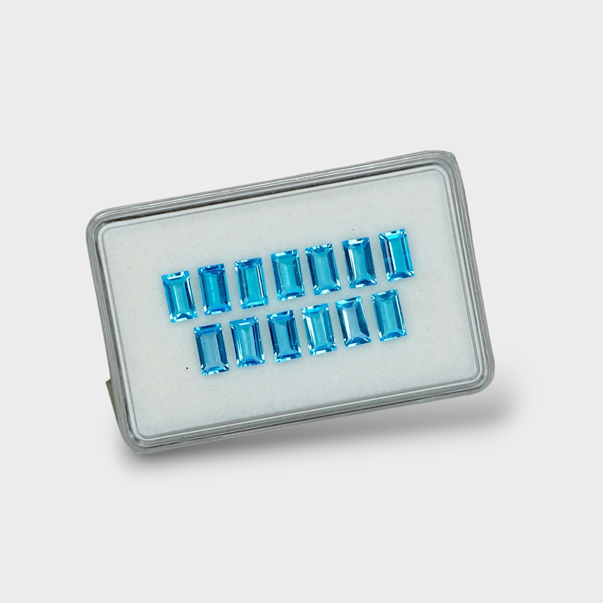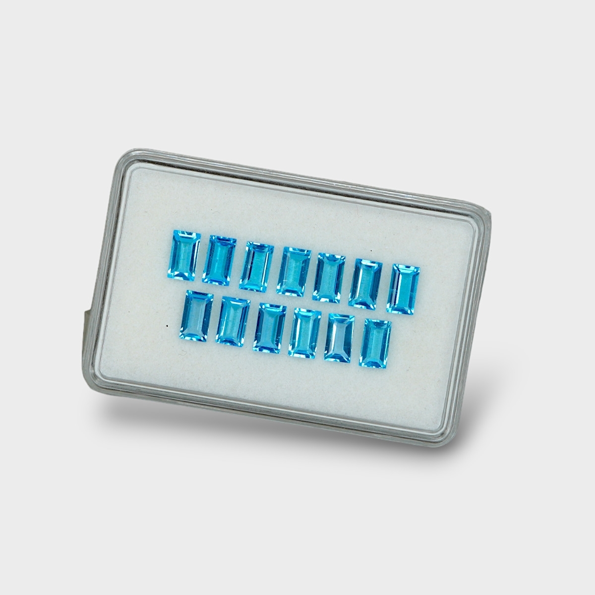 11.35 Cts. Swiss Blue Topaz 7x4mm Step Cut Baguette Shape AAA Grade Gemstones Parcel - Total 13 Pc.