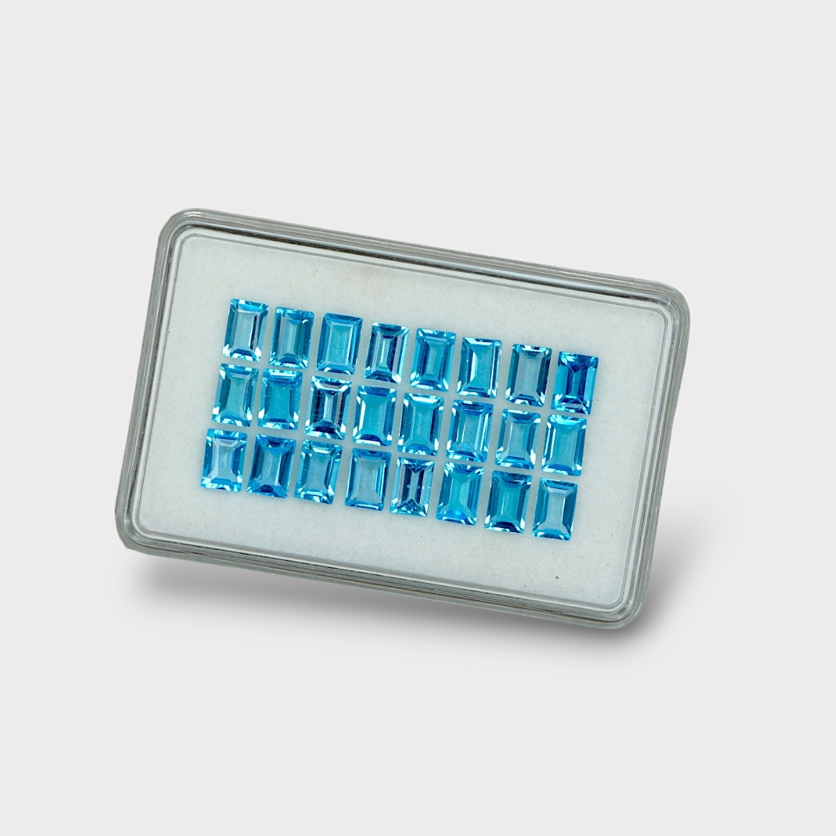 16.16 Cts. Swiss Blue Topaz 6x4mm Step Cut Baguette Shape AAA Grade Gemstones Parcel - Total 24 Pc.