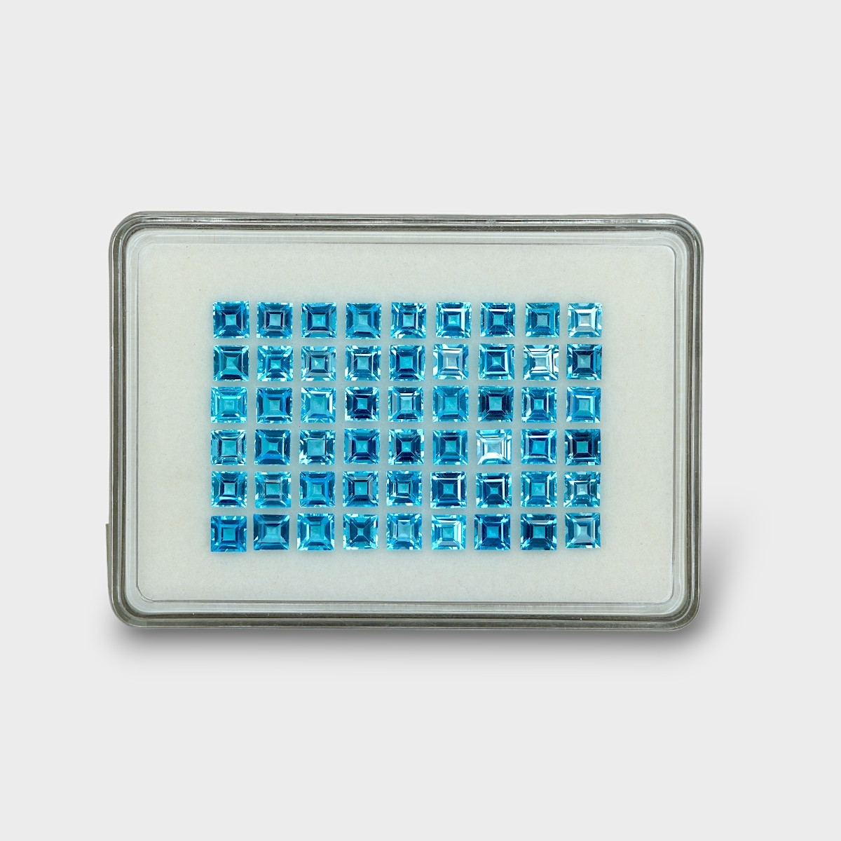 44.84 Cts. Swiss Blue Topaz 5mm Step Cut Square Shape AAA Grade Gemstones Parcel - Total 54 Pc.