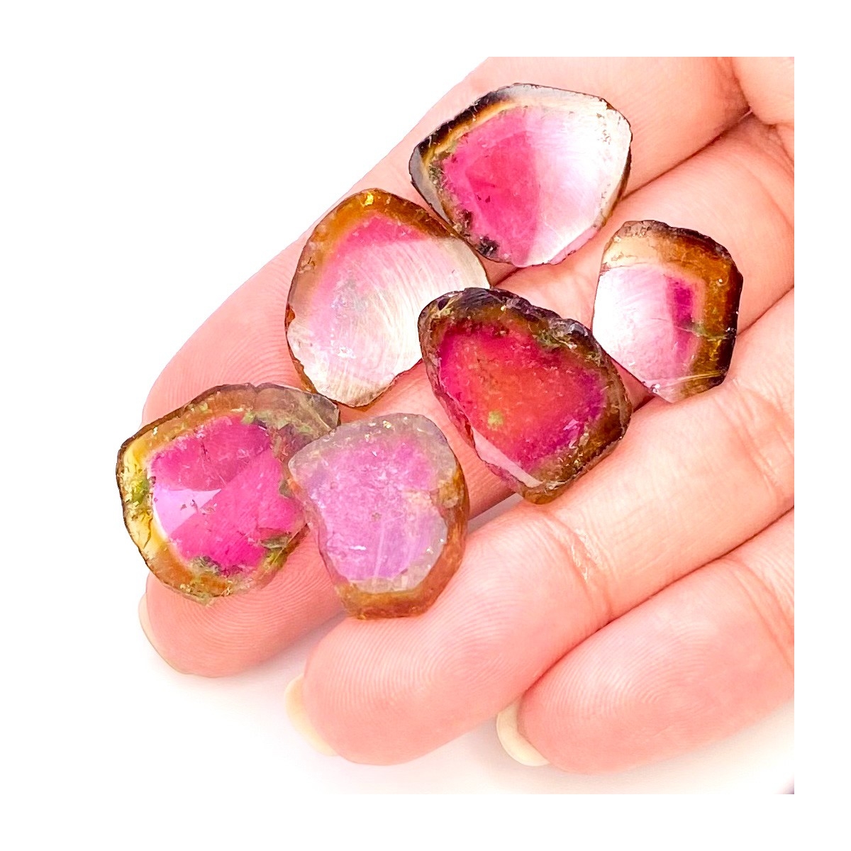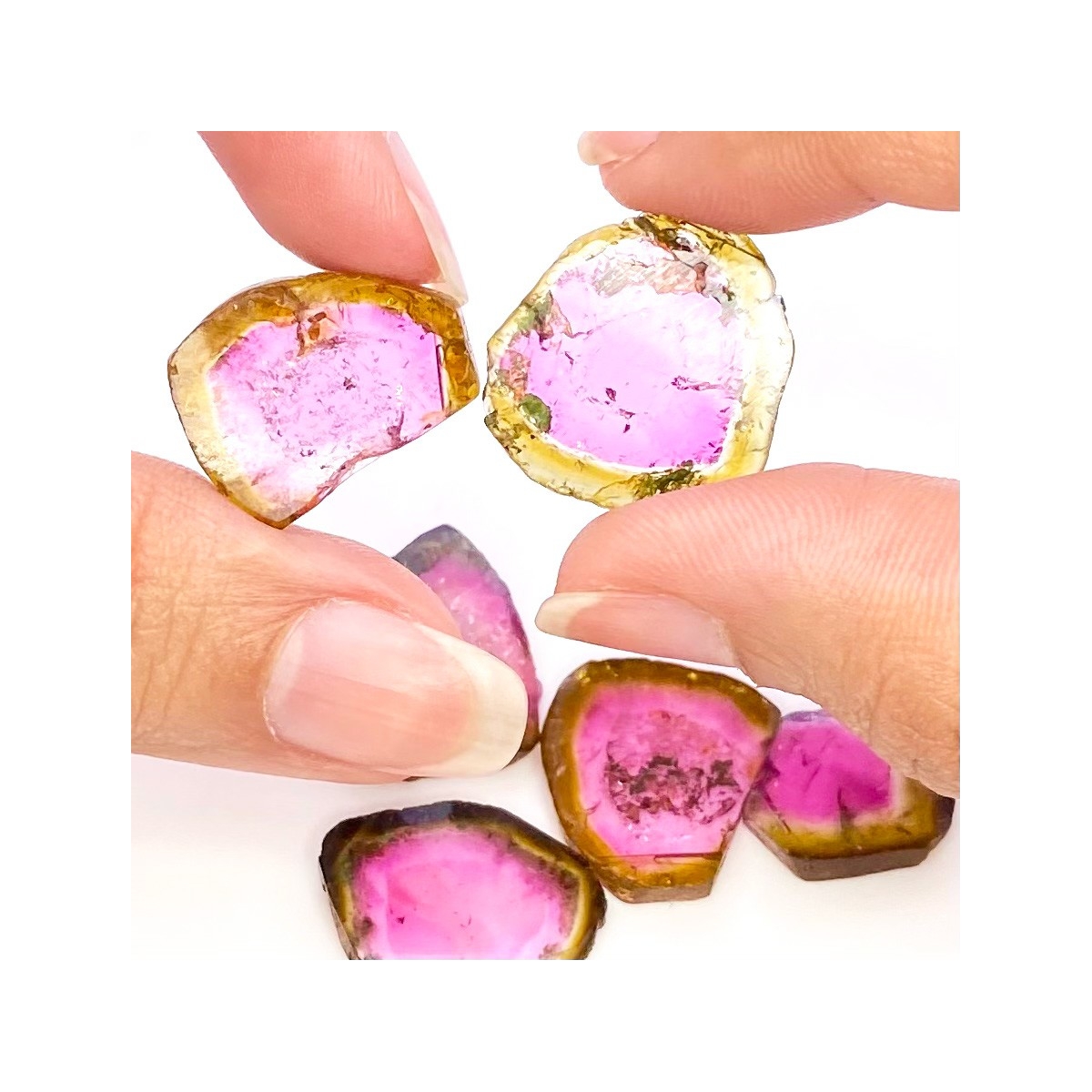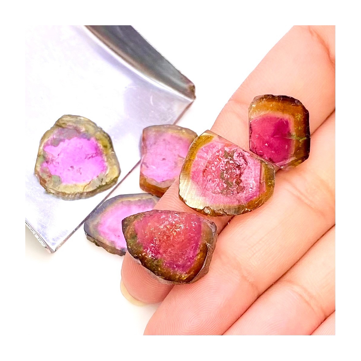 Buy This "AA" Grade 16-21mm Smooth Irregular Shape Natural Watermelon Tourmaline (Heated) Gemstones Parcel. You Will Receive 6 Pcs. With a Total Weight of 49 Cts.. This Watermelon Tourmaline Stone is Originated From Africa and Masterfully Handcrafted by The Experienced Artisans of Jaipur (India).