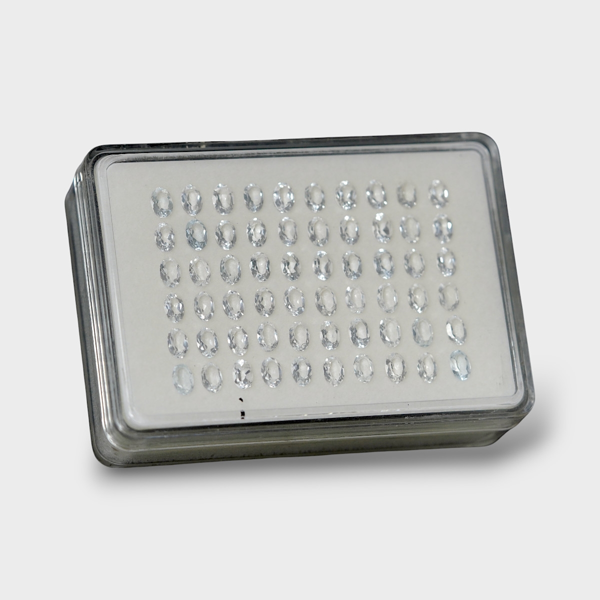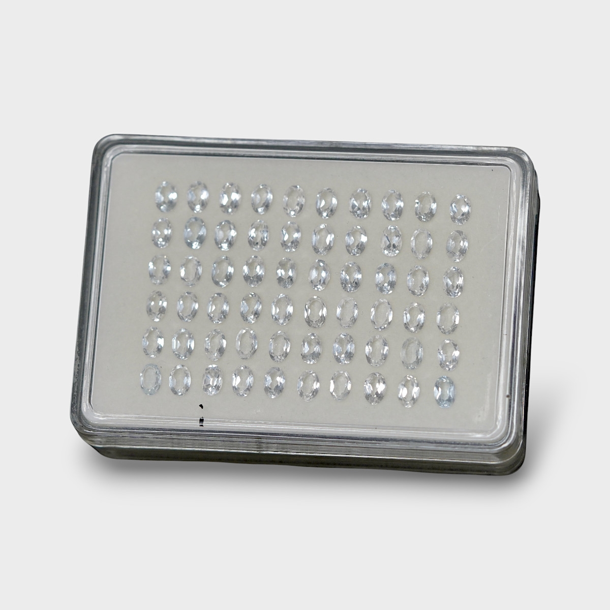 Buy This "AAA" Grade 6x4mm Faceted Oval Shape Natural White Topaz (Un-Treated) Gemstones Parcel. You Will Receive 60 Pcs. With a Total Weight of 29.92 Cts.. This White Topaz Stone is Originated From Brazil and Masterfully Handcrafted by The Experienced Artisans of Jaipur (India).