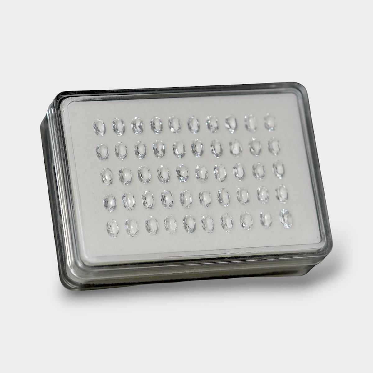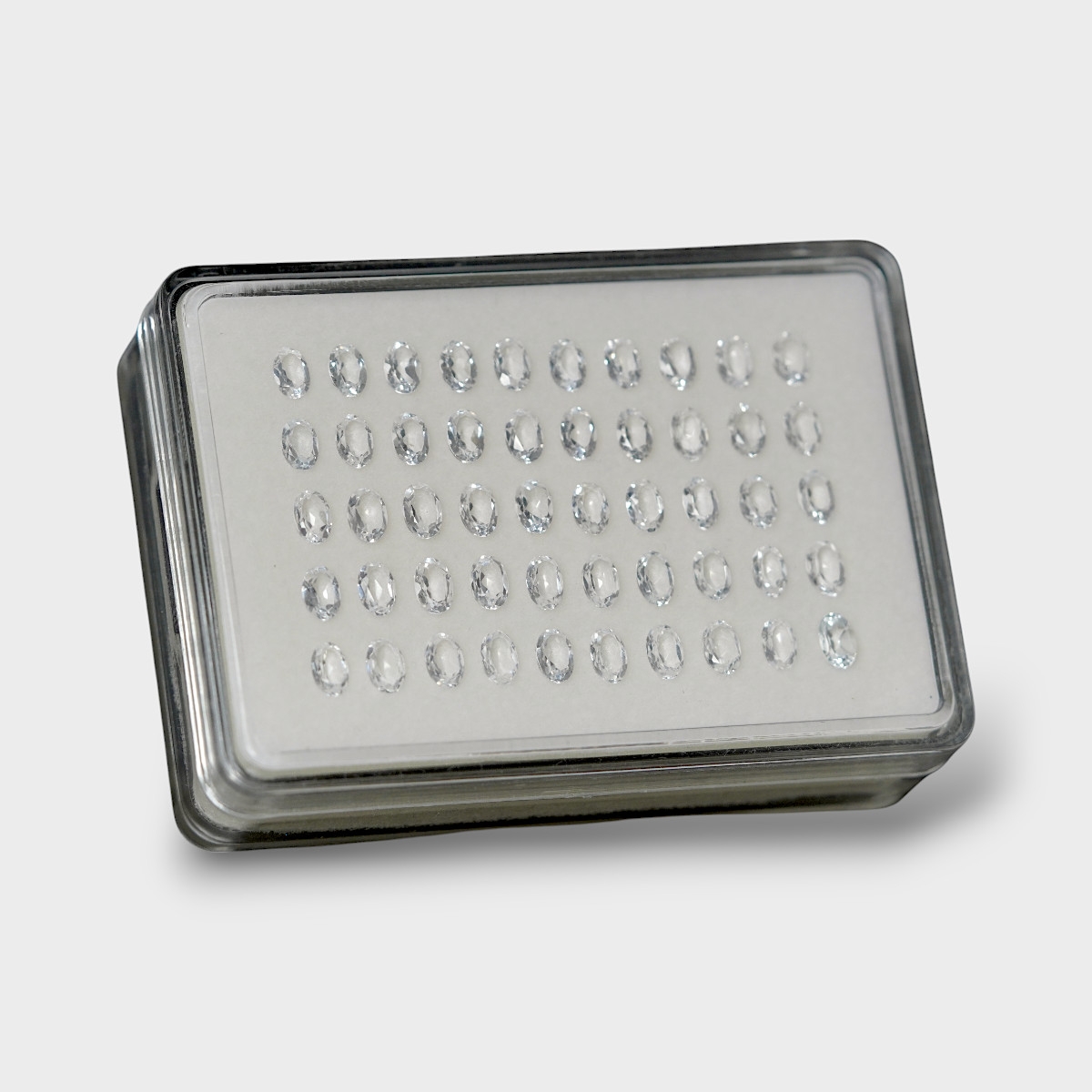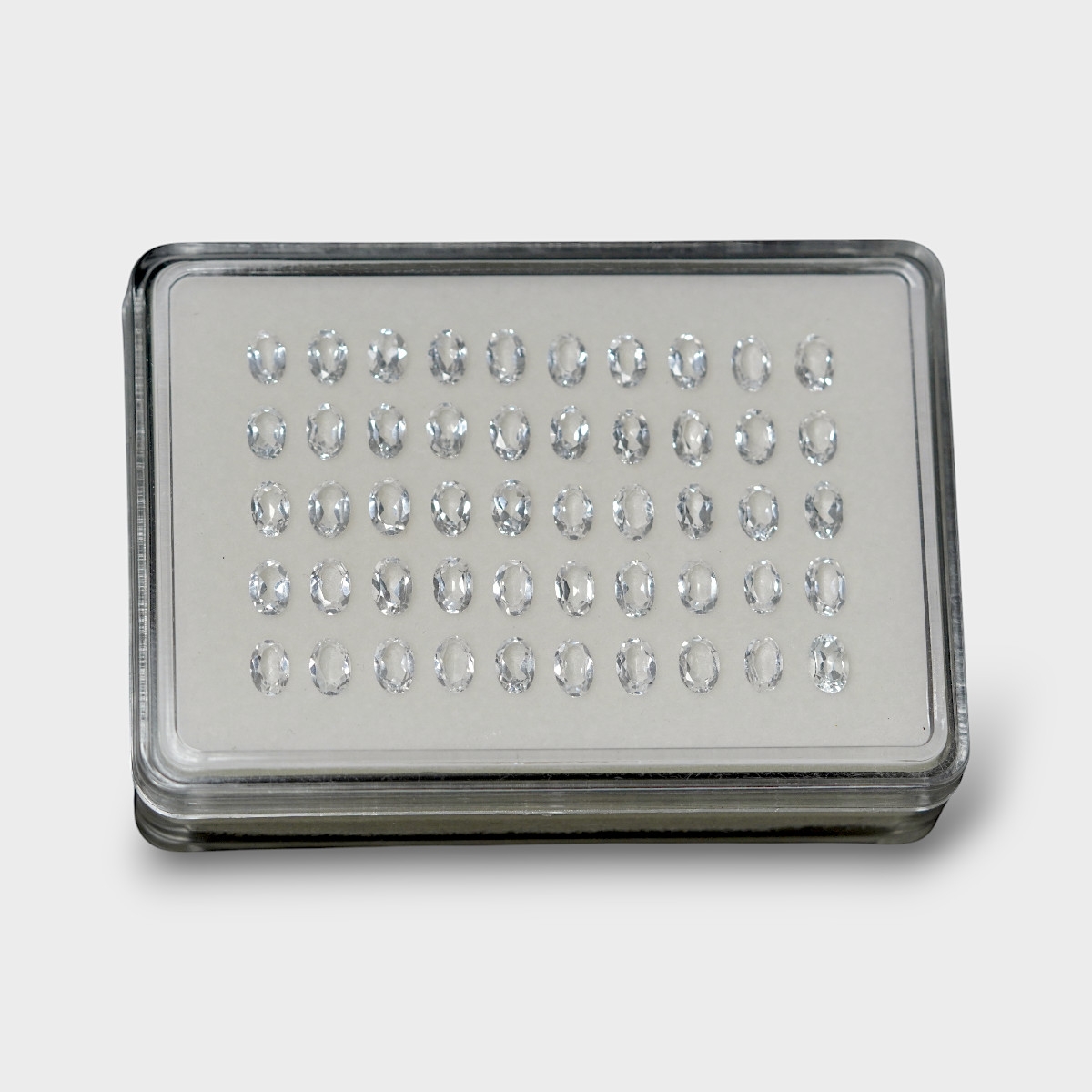 Buy This "AAA" Grade 6x4mm Faceted Oval Shape Natural White Topaz (Un-Treated) Gemstones Parcel. You Will Receive 50 Pcs. With a Total Weight of 24.35 Cts.. This White Topaz Stone is Originated From Brazil and Masterfully Handcrafted by The Experienced Artisans of Jaipur (India).