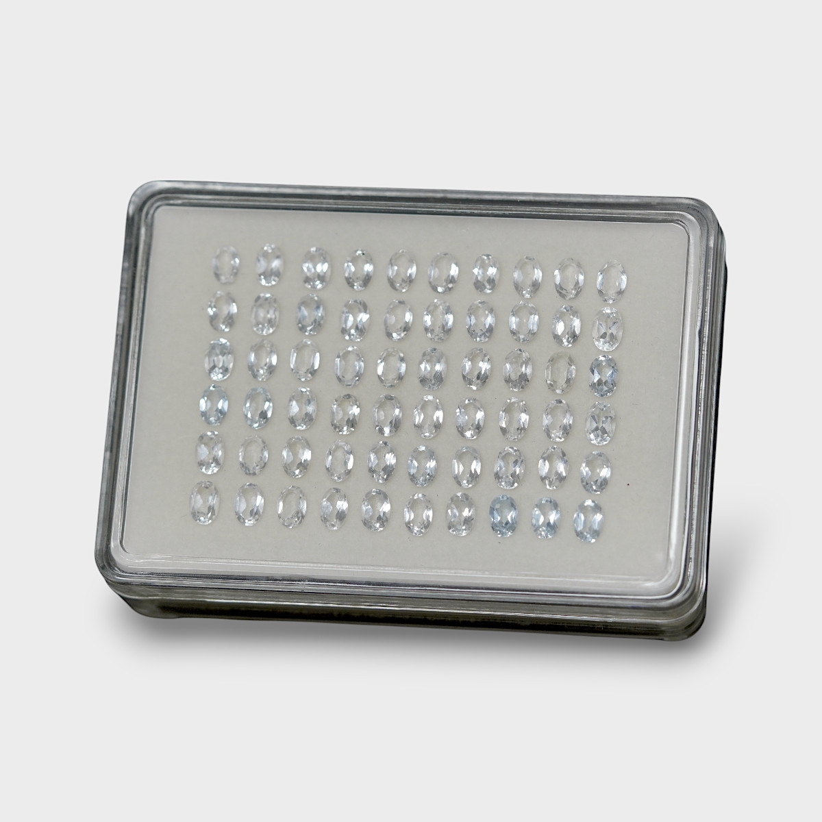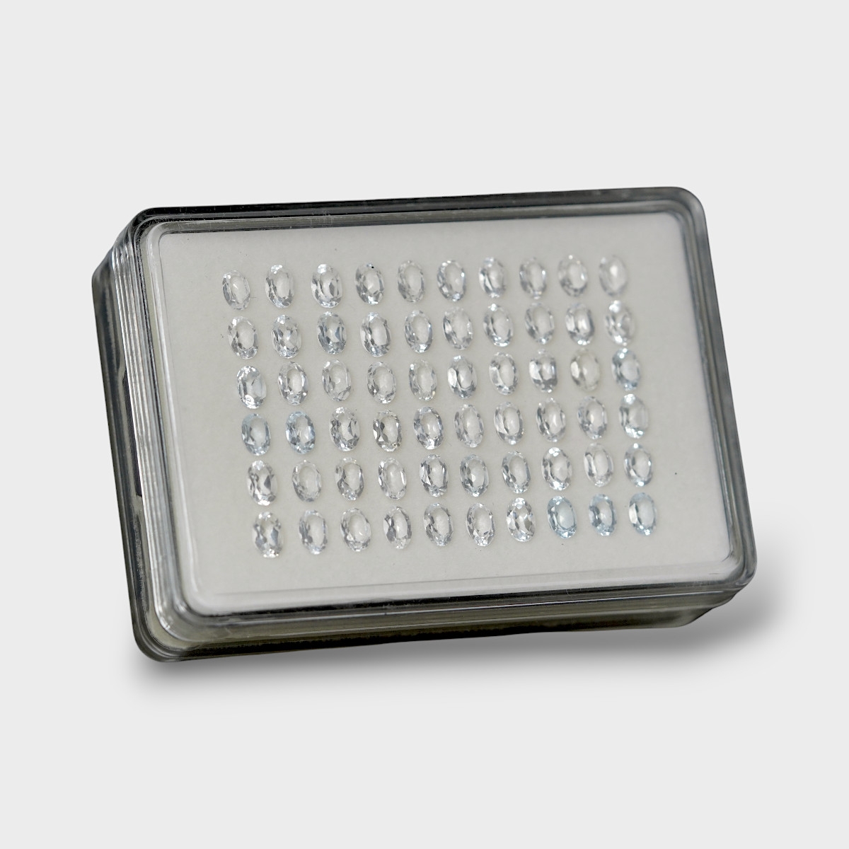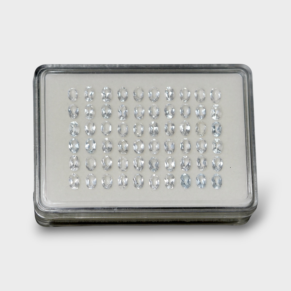 Buy This "AAA" Grade 6x4mm Faceted Oval Shape Natural White Topaz (Un-Treated) Gemstones Parcel. You Will Receive 60 Pcs. With a Total Weight of 30.97 Cts.. This White Topaz Stone is Originated From Brazil and Masterfully Handcrafted by The Experienced Artisans of Jaipur (India).