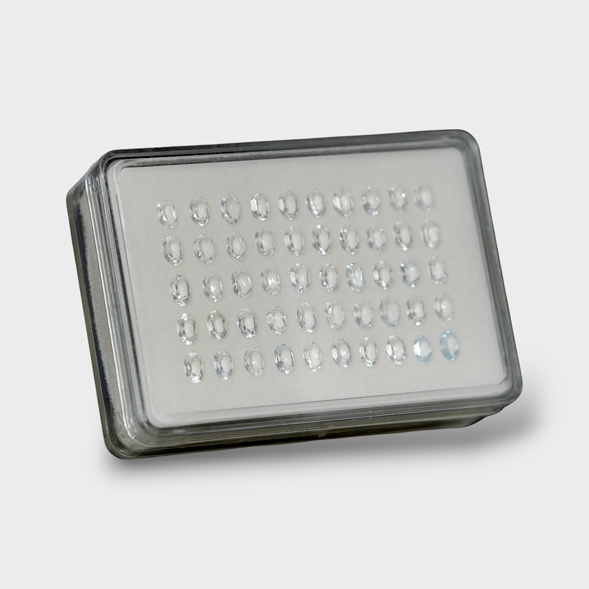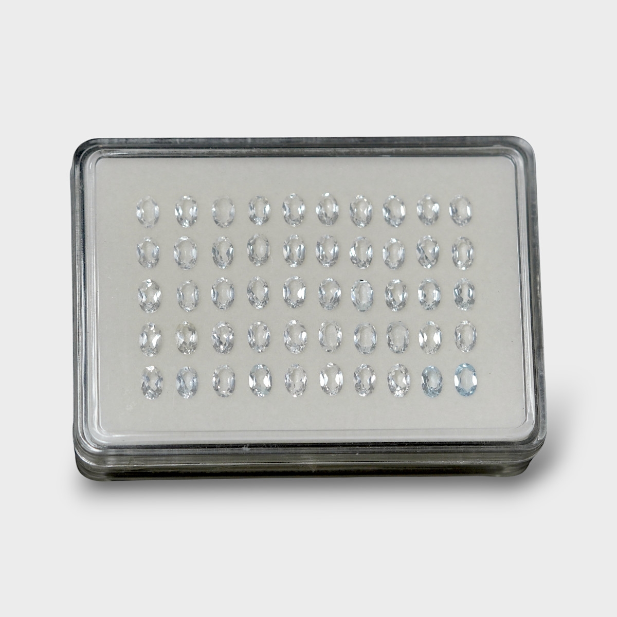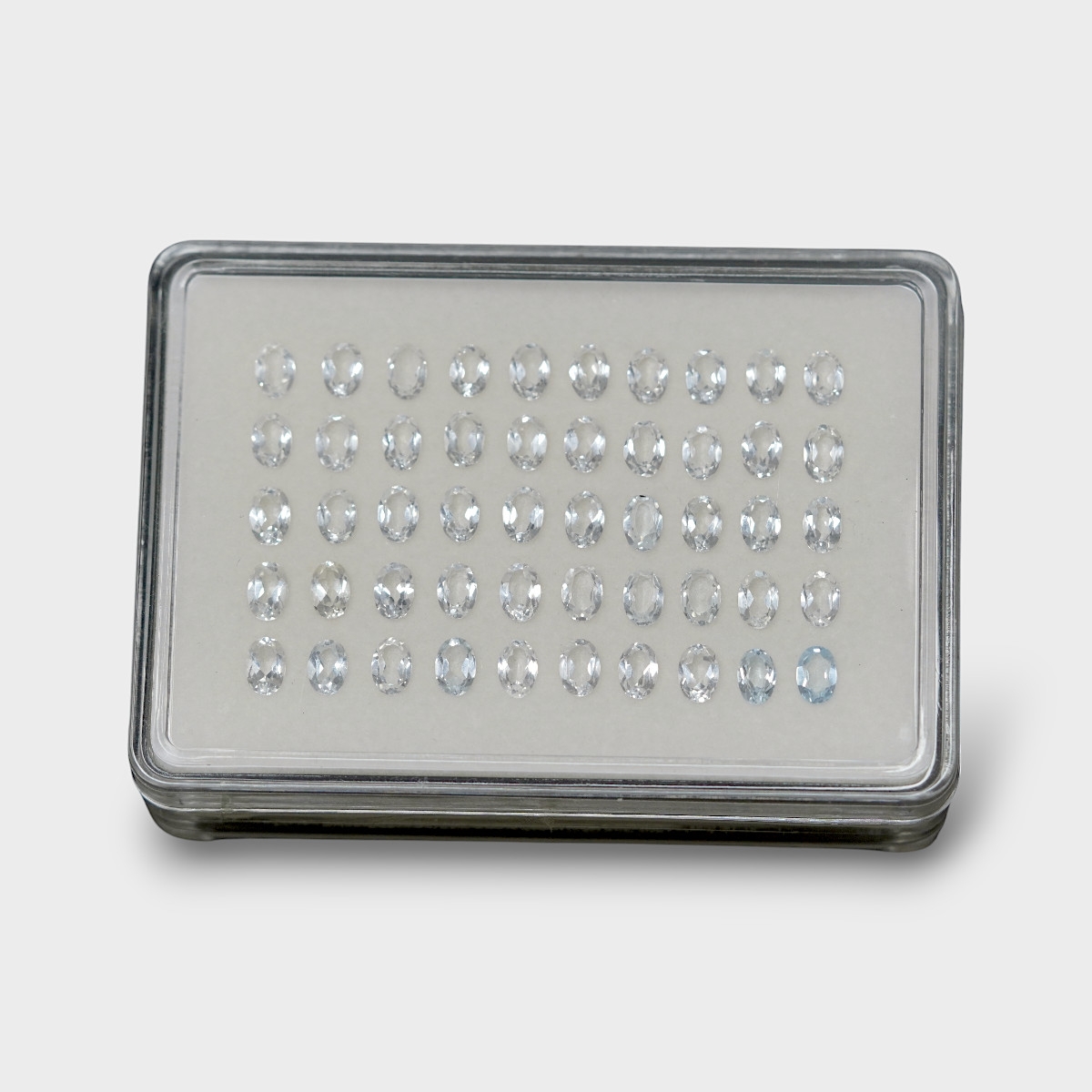 Buy This "AAA" Grade 6x4mm Faceted Oval Shape Natural White Topaz (Un-Treated) Gemstones Parcel. You Will Receive 50 Pcs. With a Total Weight of 25.61 Cts.. This White Topaz Stone is Originated From Brazil and Masterfully Handcrafted by The Experienced Artisans of Jaipur (India).