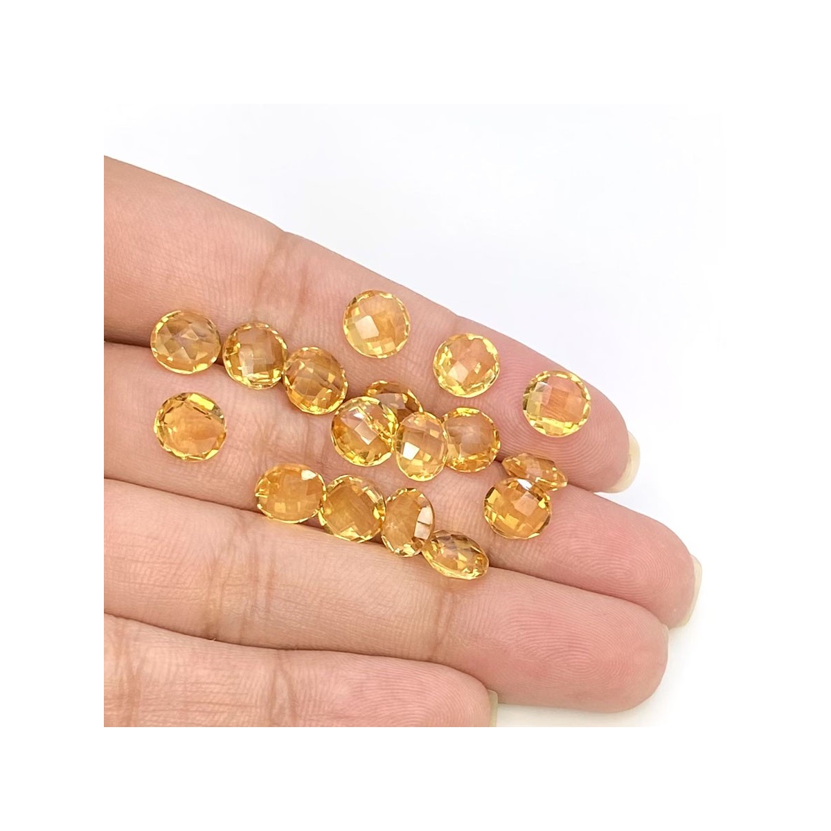 Buy This "AAA" Grade 7mm Briolette Round Shape Natural Citrine (Heated) Loose Gemstone Beads Lot. You Will Receive 18 Pcs. With a Total Weight of 19.7 Carat. This Citrine Stone is Originated From Brazil and Masterfully Handcrafted by The Experienced Artisans of Jaipur (India).