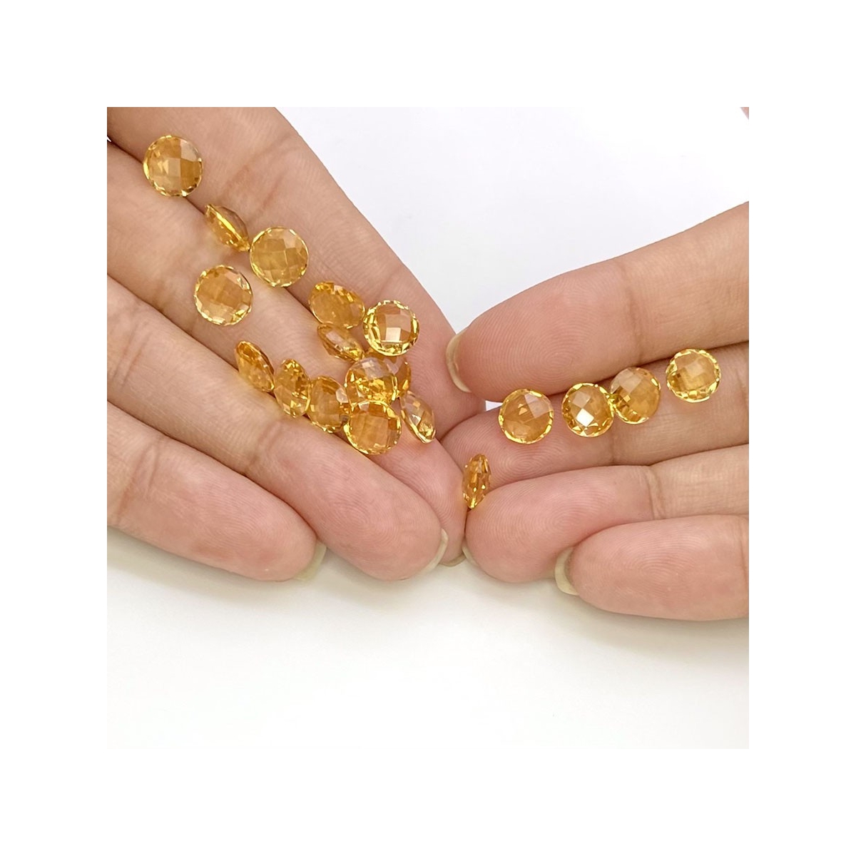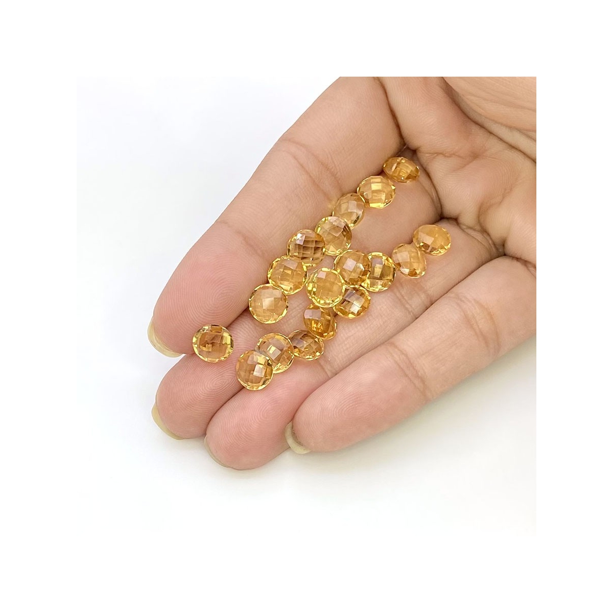 Buy This "AAA" Grade 7mm Briolette Round Shape Natural Citrine (Heated) Loose Gemstone Beads Lot. You Will Receive 19 Pcs. With a Total Weight of 21.2 Carat. This Citrine Stone is Originated From Brazil and Masterfully Handcrafted by The Experienced Artisans of Jaipur (India).