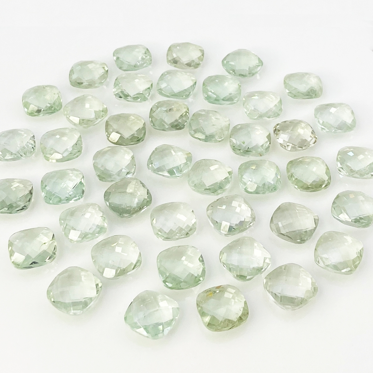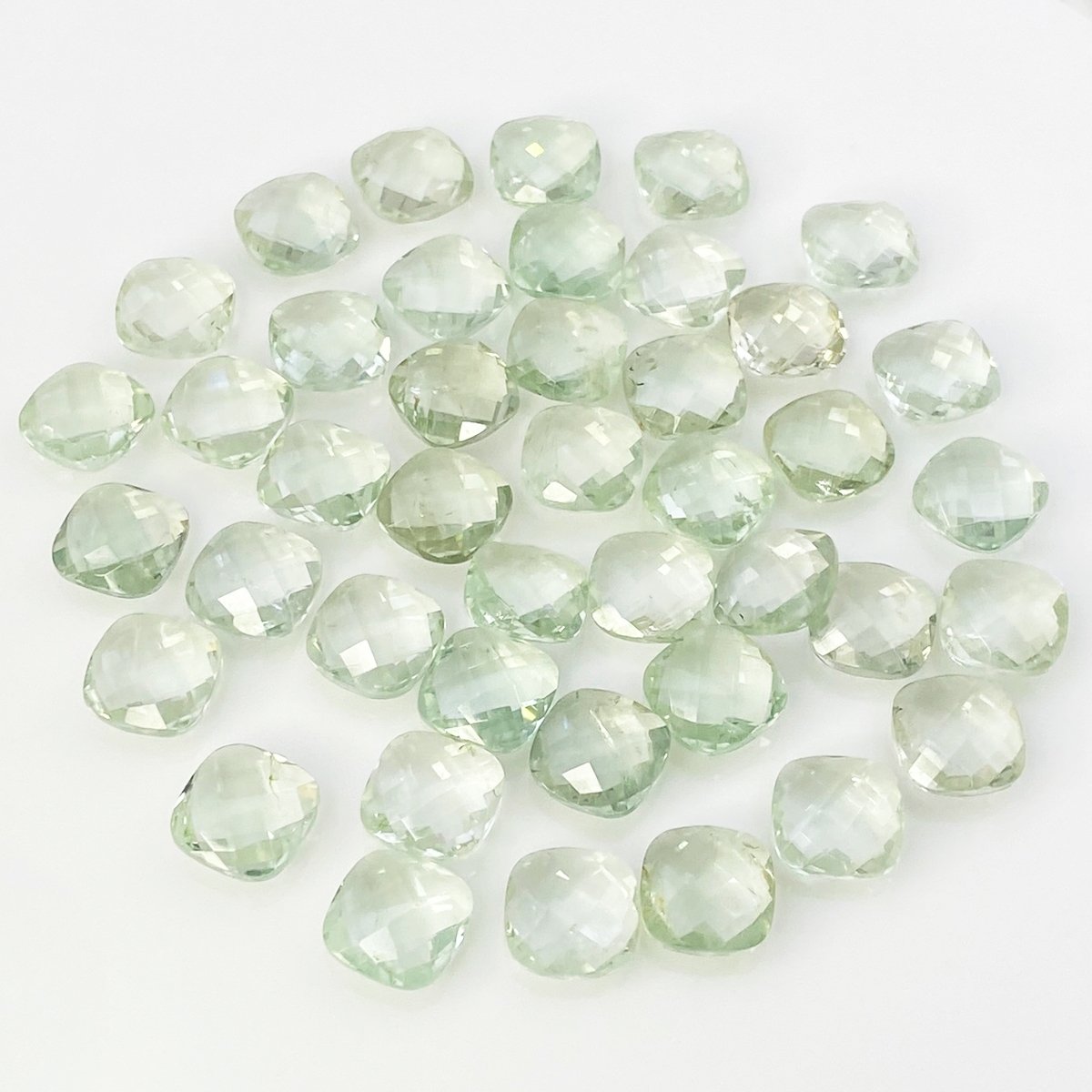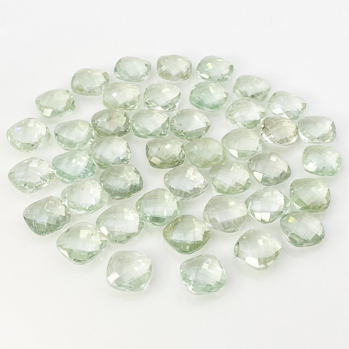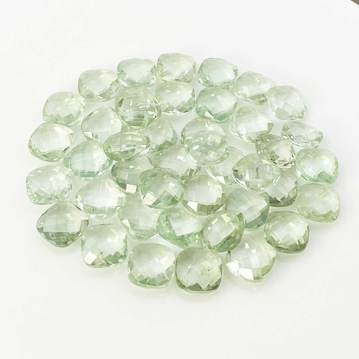 224.15 Cts. Green Amethyst 12mm Checkerboard Square Cushion Shape AA+ Grade Loose Gemstone Beads Lot - Total 42 Pcs.