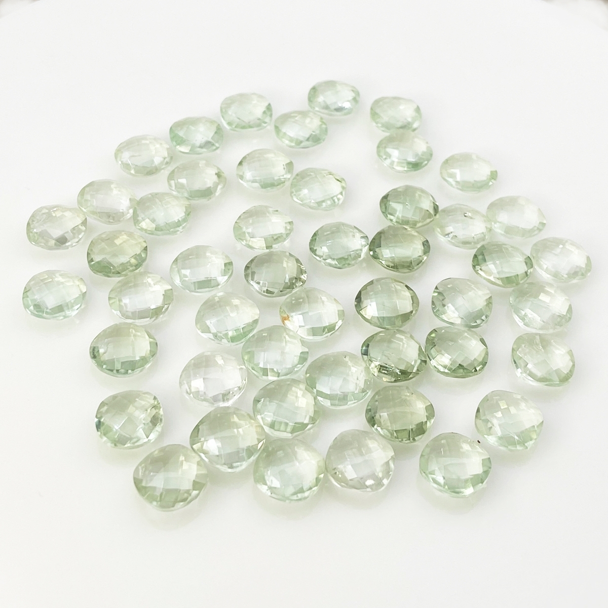 148.15 Cts. Green Amethyst 10mm Checkerboard Square Cushion Shape AA+ Grade Loose Gemstone Beads Lot - Total 48 Pcs.