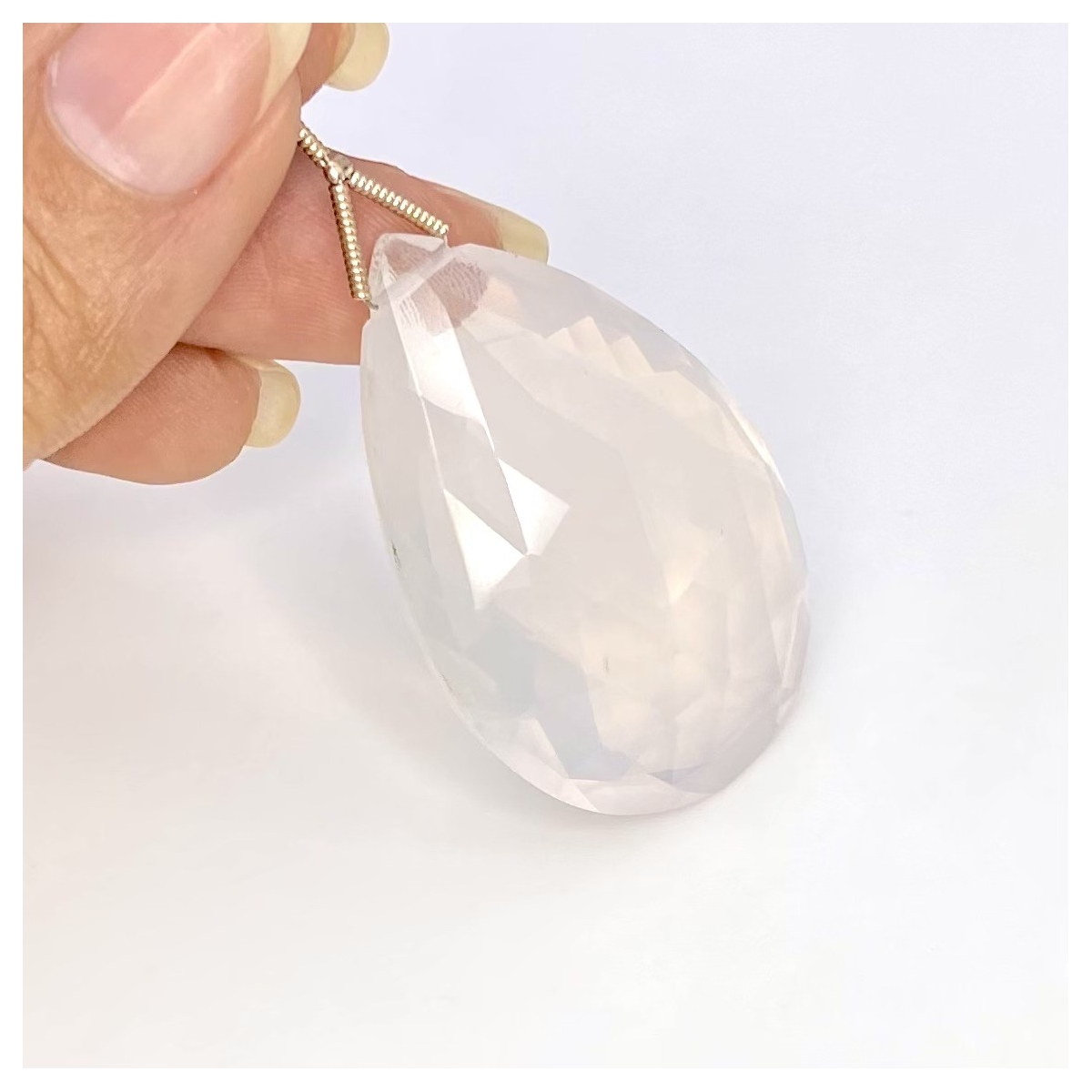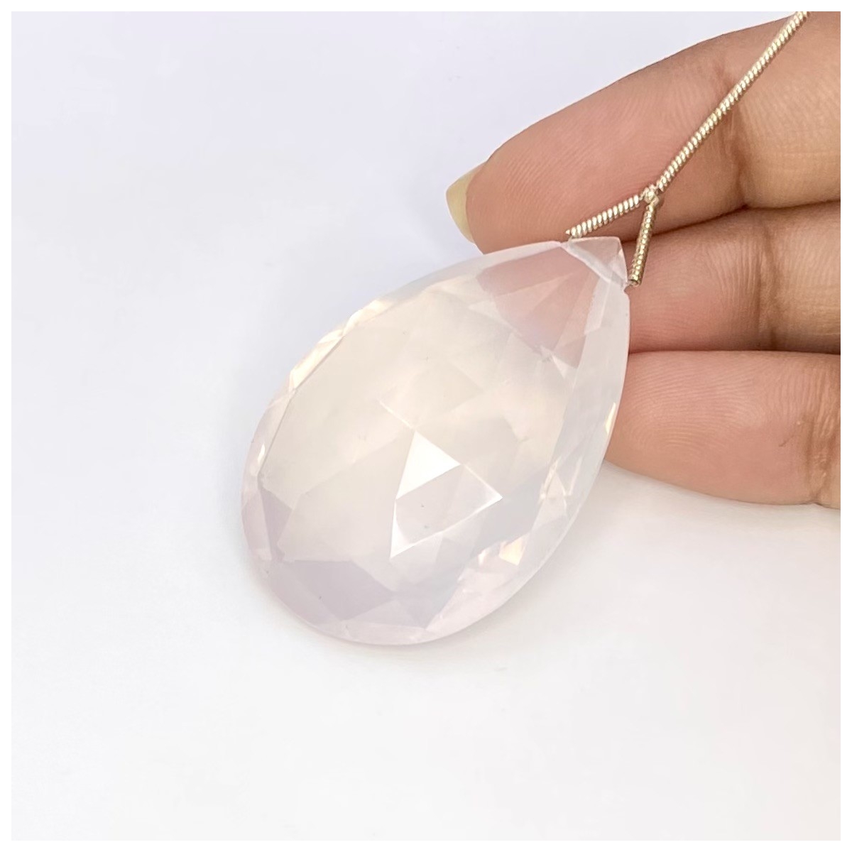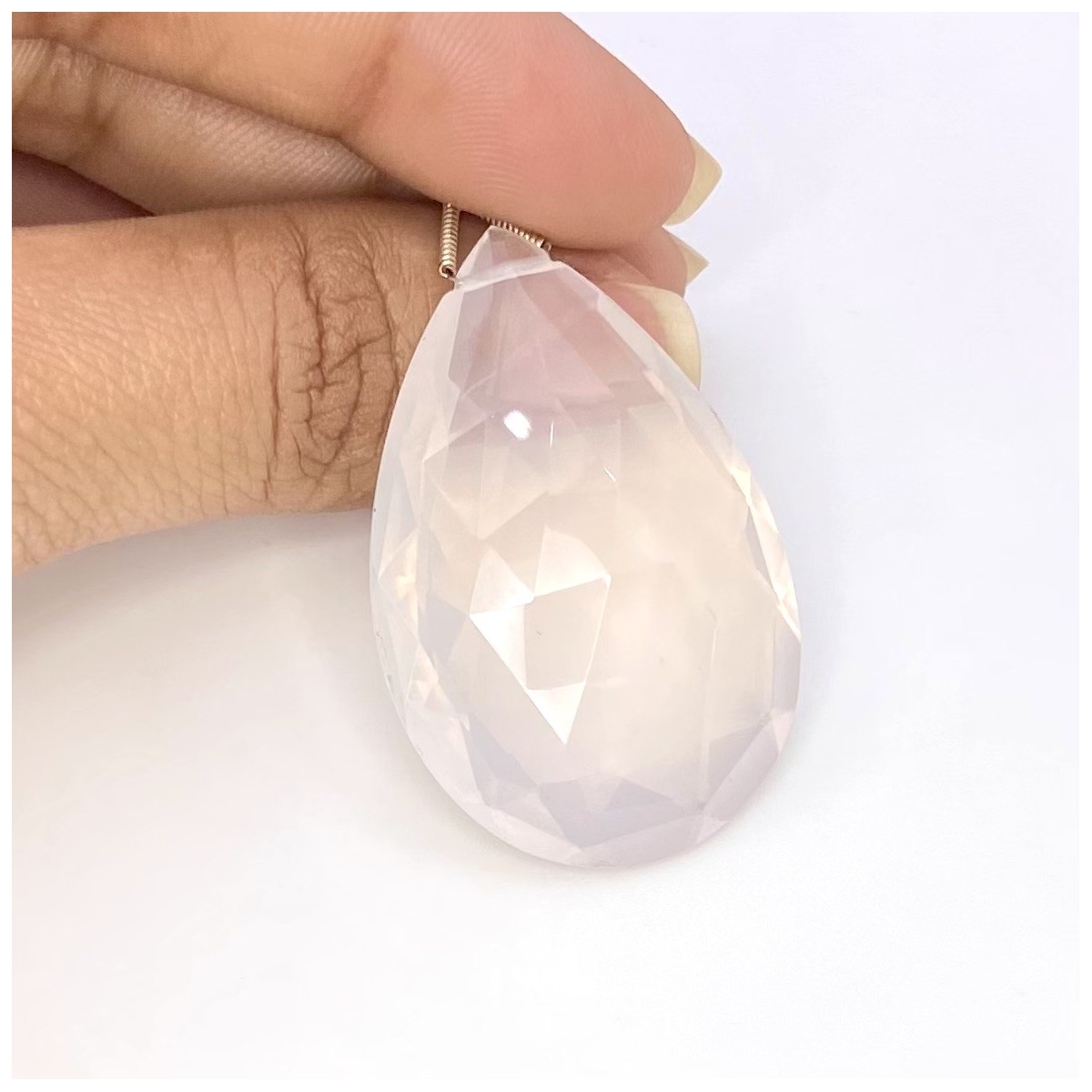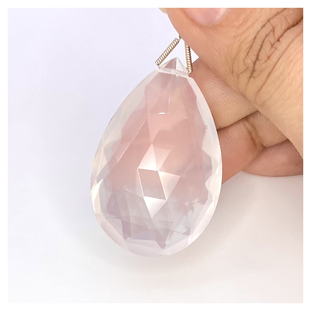 Buy This "AAA" Grade 41.5mm Briolette Pear Shape Natural Ice Quartz (Un-Treated) Loose Gemstone Bead. You Will Receive 1 Pc. With a Total Weight of 86 Cts.. This Ice Quartz Stone is Originated From Brazil and Masterfully Handcrafted by The Experienced Artisans of Jaipur (India).