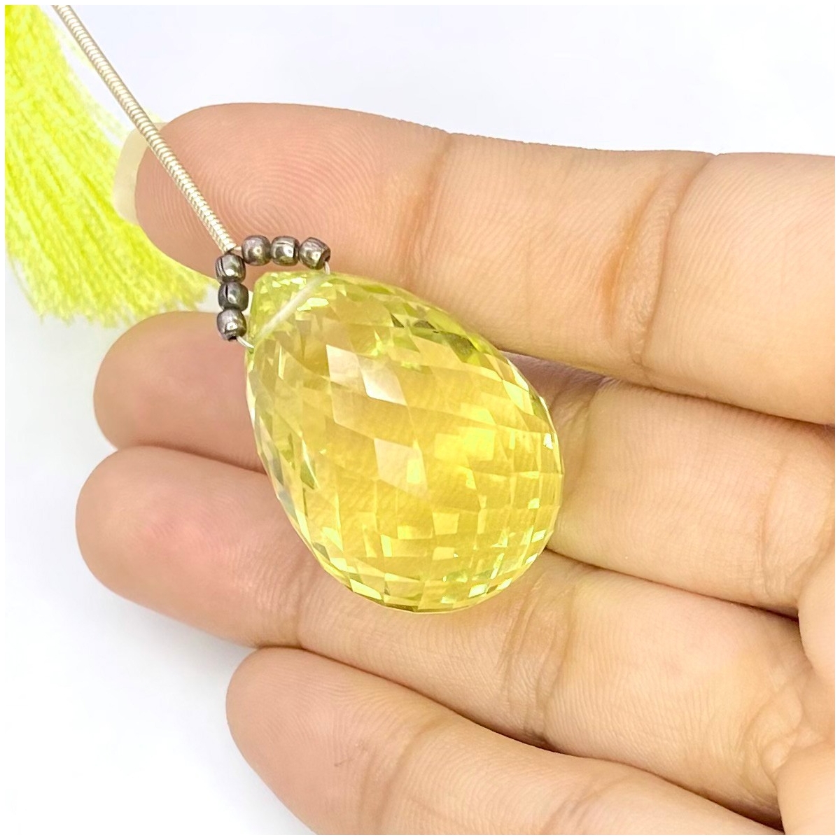 Buy This "AAA" Grade 29mm Briolette Drop Shape Natural Lemon Quartz (Heated) Loose Gemstone Bead. You Will Receive 1 Pc. With a Total Weight of 80.55 Cts.. This Lemon Quartz Stone is Originated From Brazil and Masterfully Handcrafted by The Experienced Artisans of Jaipur (India).
