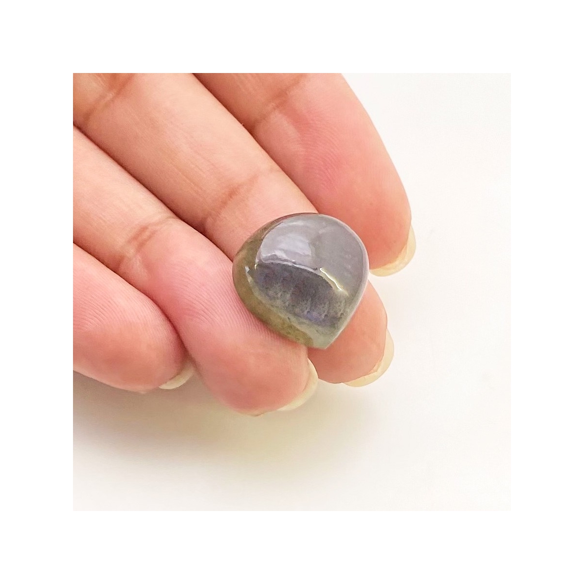 Buy This "AA" Grade 15mm Smooth Heart Shape Natural Labradorite (Un-Treated) Loose Cabochon. You Will Receive 1 Pc. With a Total Weight of 13.45 Carats. This Labradorite Stone is Originated From Africa and Masterfully Handcrafted by The Experienced Artisans of Jaipur (India).