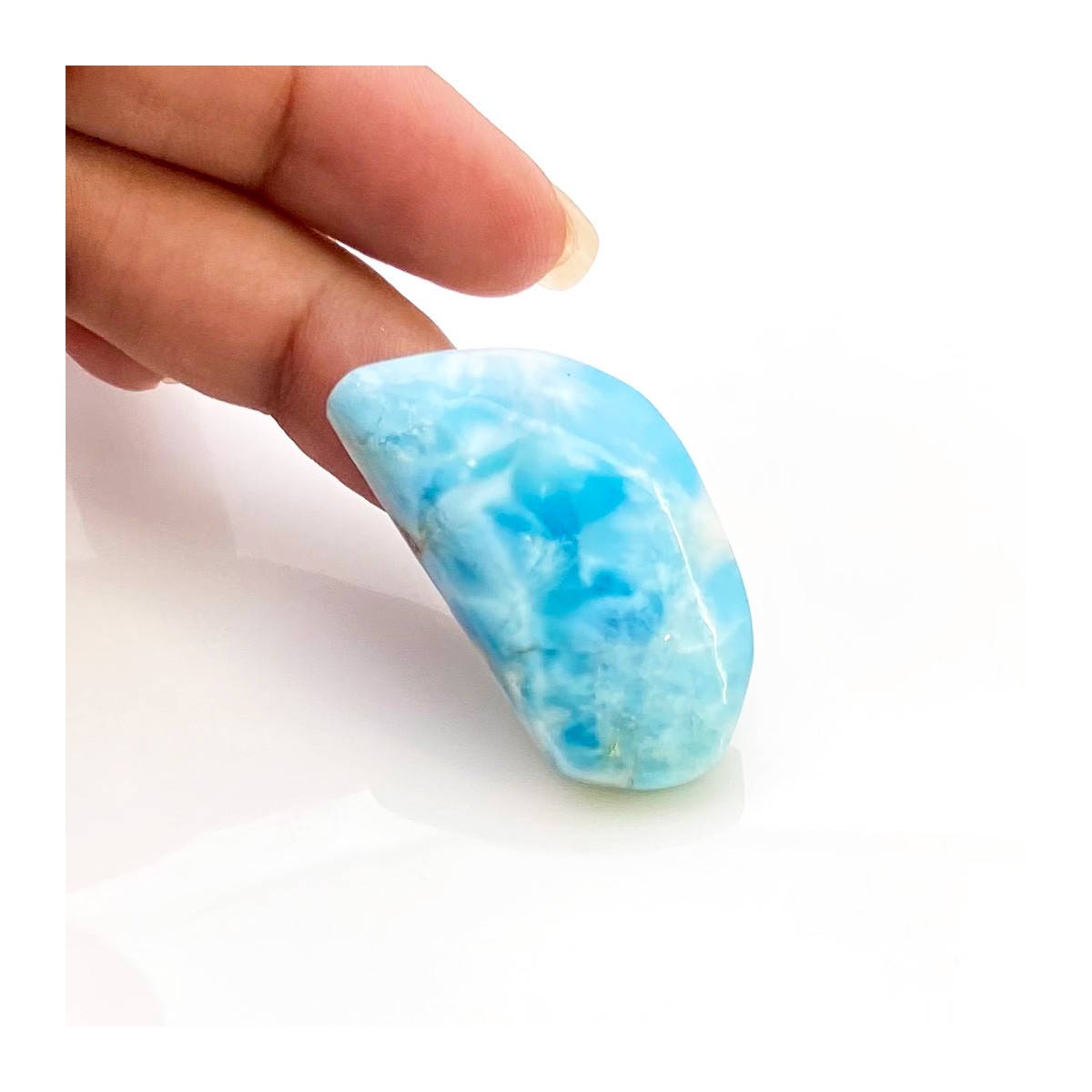 Buy This "AA" Grade 39x21mm Smooth Fancy Shape Natural Larimar (Un-Treated) Loose Cabochon. You Will Receive 1 Pc. With a Total Weight of 53 Carat. This Larimar Stone is Originated From Domonica and Masterfully Handcrafted by The Experienced Artisans of Jaipur (India).