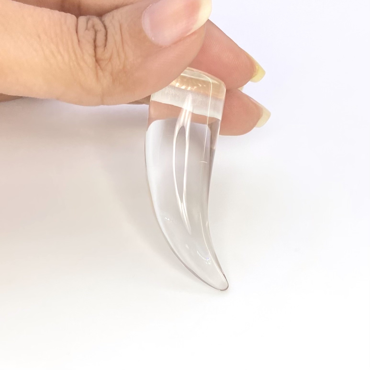 Buy This "AAA" Grade 46.5mm Smooth Horn Shape Natural Crystal Quartz (Un-Treated) Loose Gemstone Carving. You Will Receive 1 Pc. With a Total Weight of 89.45 Cts.. This Crystal Quartz Stone is Originated From Brazil and Masterfully Handcrafted by The Experienced Artisans of Jaipur (India).
