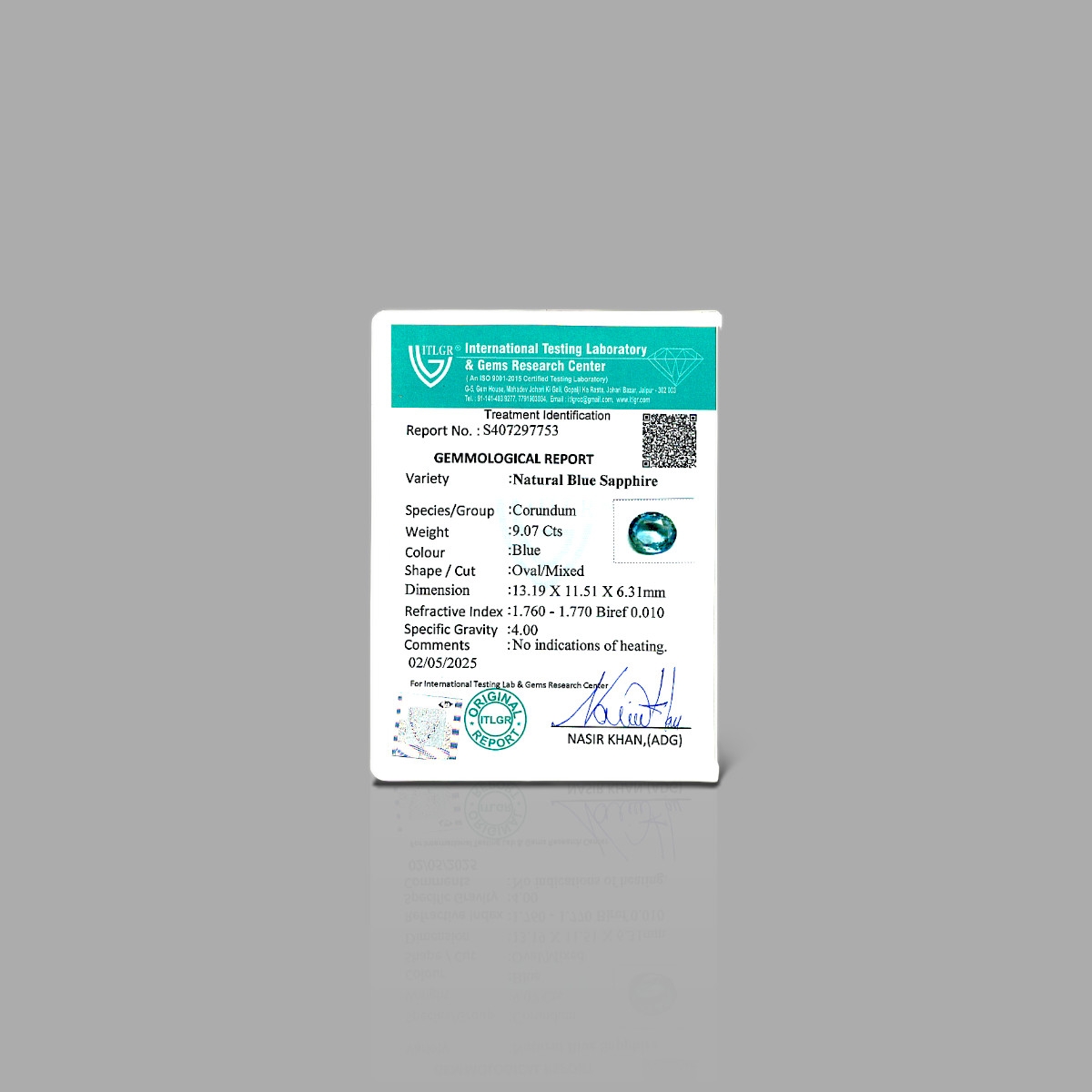 Buy This "AA" Grade 13.16X11.50x6.50mm Faceted Oval Shape Natural Blue Sapphire (Un-Treated) Loose Gemstone. You Will Receive 1 Pc. With a Total Weight of 9.07 Cts.. This Blue Sapphire Stone is Originated From Sri Lanka and Masterfully Handcrafted by The Experienced Artisans of Jaipur (India).