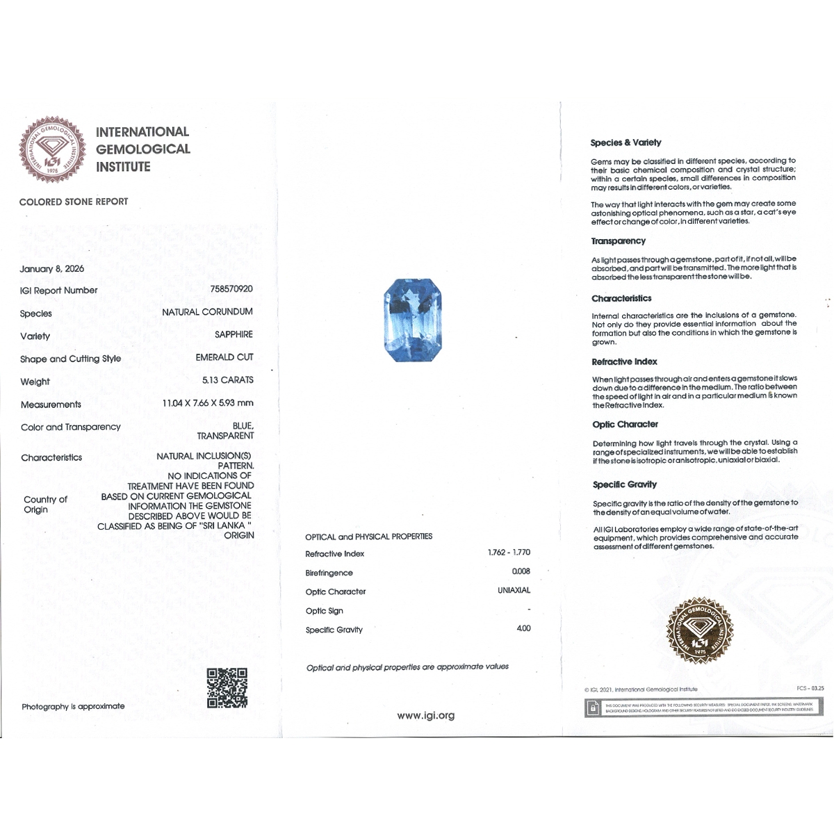 - This "AA" Grade Natural Blue Sapphire is from Sri Lanka
