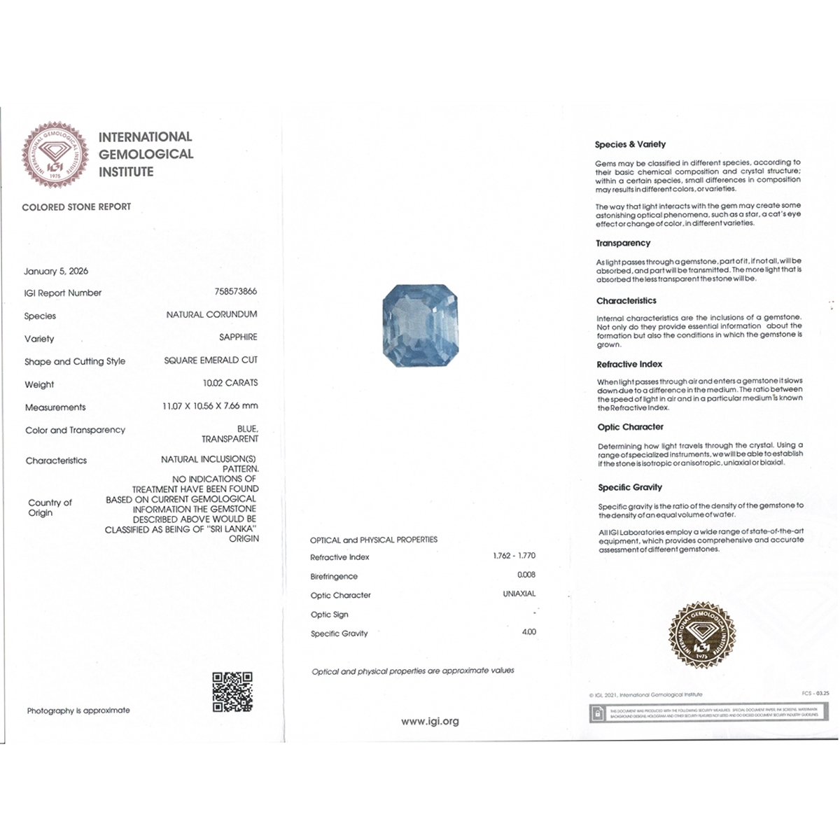 Buy This "AA" Grade 11.07x10.56x7.66mm Step Cut Octagon Shape Natural Blue Sapphire (Un-Treated) Loose Gemstone. You Will Receive 1 Pc. With a Total Weight of 10.02 Cts.. This Blue Sapphire Stone is Originated From Sri Lanka and Masterfully Handcrafted by The Experienced Artisans of Jaipur (India).