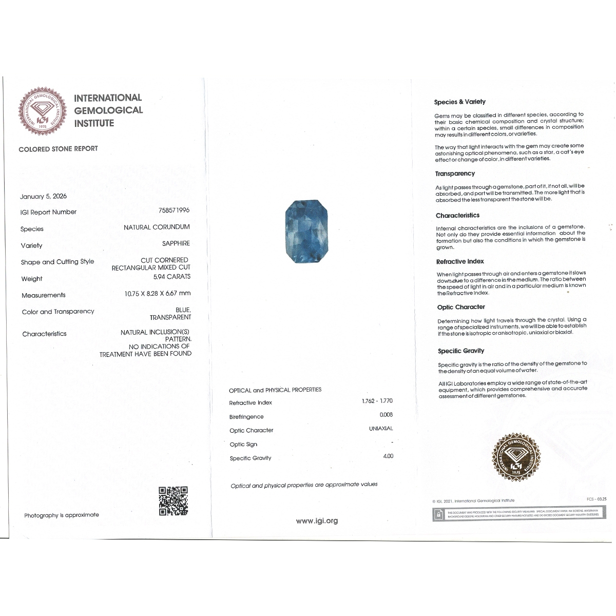 Buy This "AA" Grade 10.75x8.28x6.67mm Step Cut Octagon Shape Natural Blue Sapphire (Un-Treated) Loose Gemstone. You Will Receive 1 Pc. With a Total Weight of 5.94 Cts.. This Blue Sapphire Stone is Originated From Sri Lanka and Masterfully Handcrafted by The Experienced Artisans of Jaipur (India).