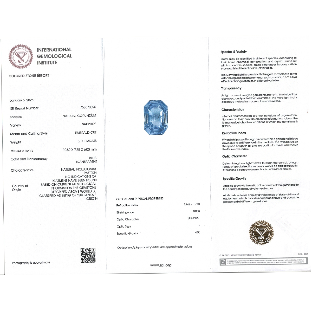 Buy This "AA" Grade 10.80x7.75x6mm Step Cut Octagon Shape Natural Blue Sapphire (Un-Treated) Loose Gemstone. You Will Receive 1 Pc. With a Total Weight of 5.11 Cts.. This Blue Sapphire Stone is Originated From Sri Lanka and Masterfully Handcrafted by The Experienced Artisans of Jaipur (India).