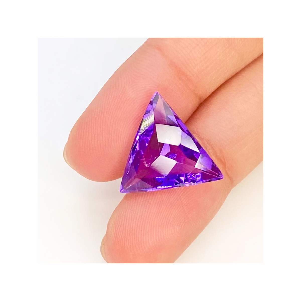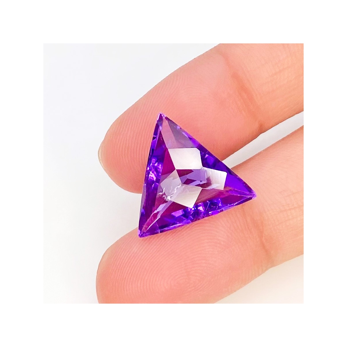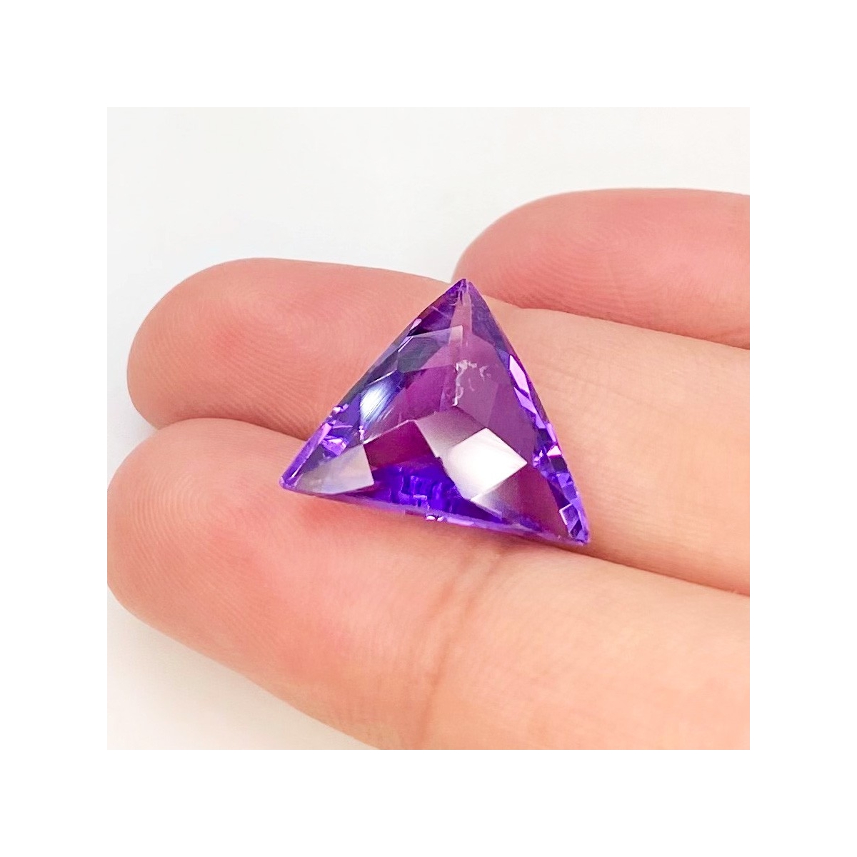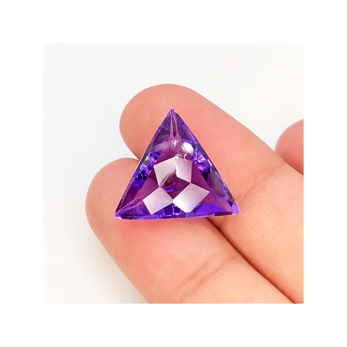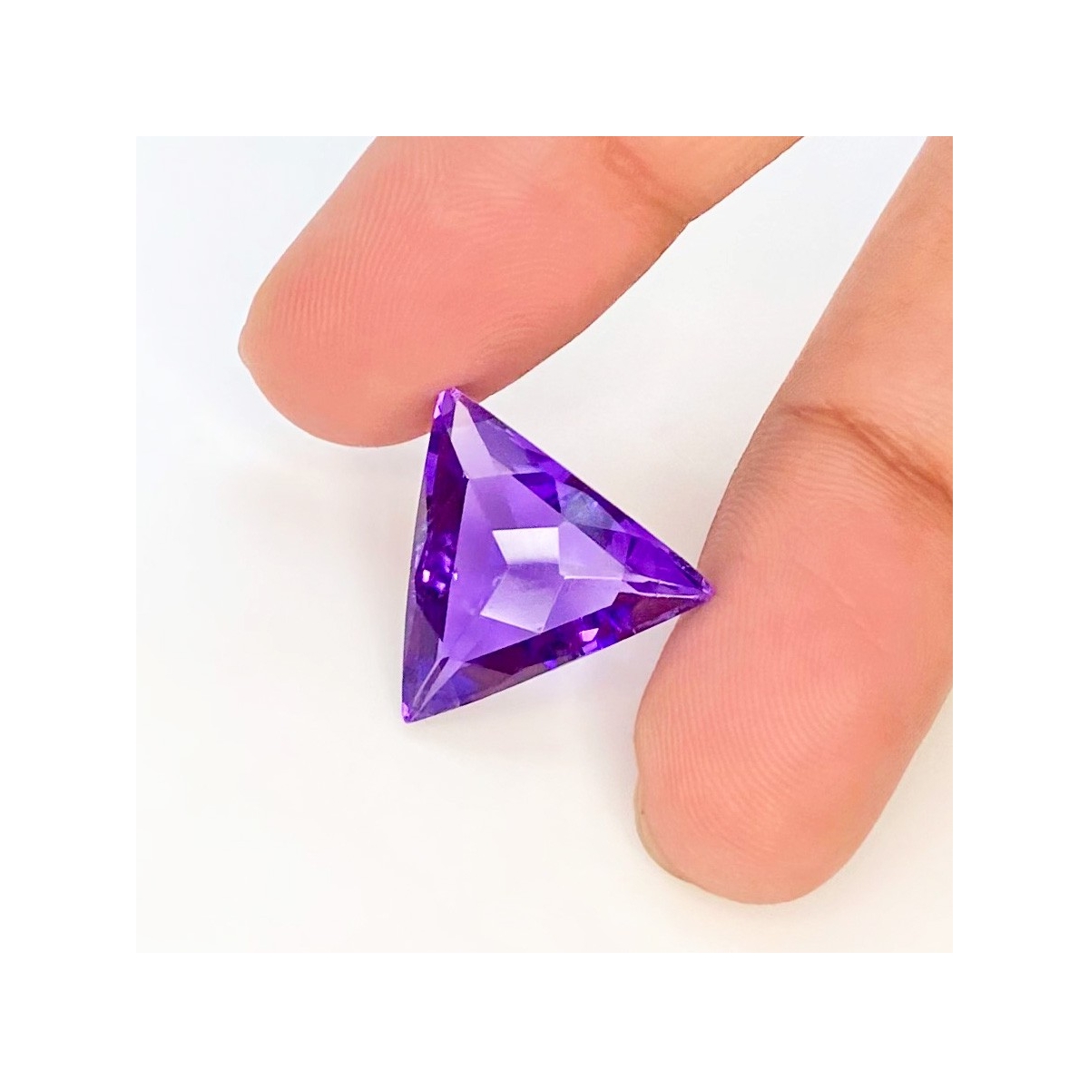 Buy This "AAA" Grade 15mm Checkerboard Trillion Shape Natural Brazilian Amethyst (Un-Treated) Loose Gemstone. You Will Receive 1 Pc. With a Total Weight of 8.4 Carat. This Brazilian Amethyst Stone is Originated From Brazil and Masterfully Handcrafted by The Experienced Artisans of Jaipur (India).