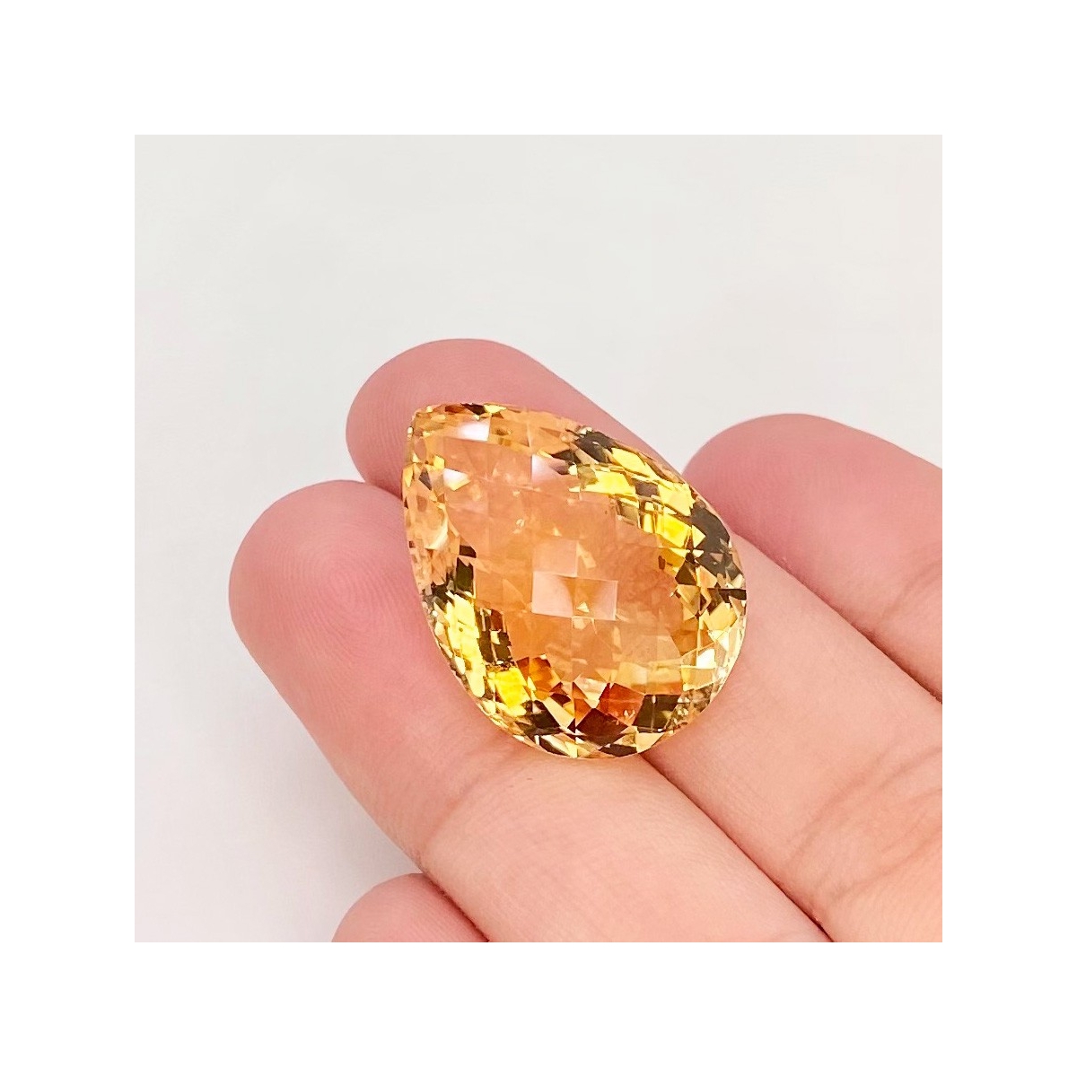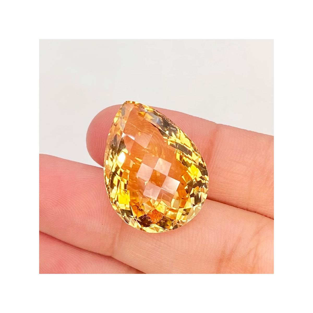 Buy This "AA" Grade 23.5x17mm Checkerboard Pear Shape Natural Citrine (Heated) Loose Gemstone. You Will Receive 1 Pc. With a Total Weight of 24.7 carat. This Citrine Stone is Originated From Brazil and Masterfully Handcrafted by The Experienced Artisans of Jaipur (India).