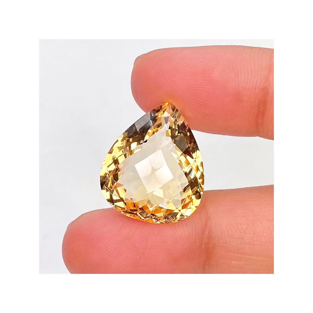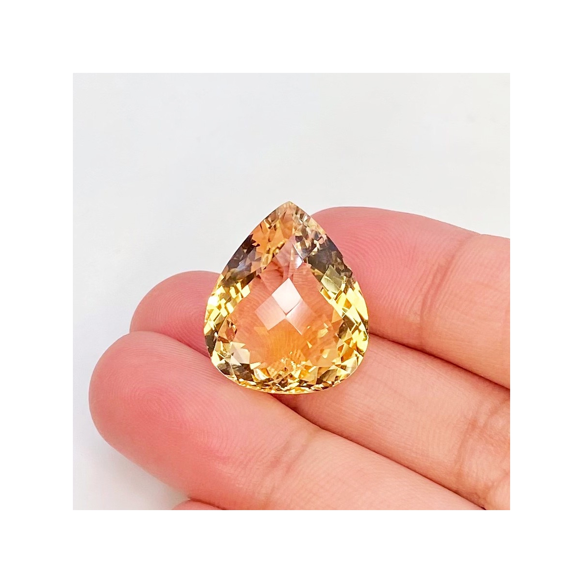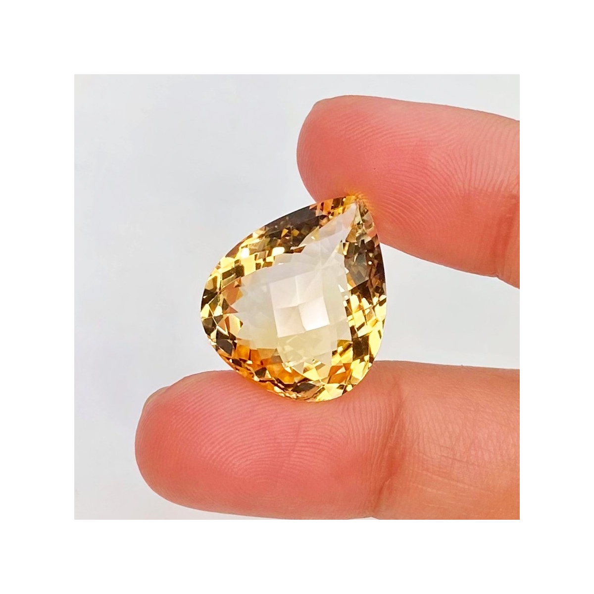 Buy This "AA" Grade 19.5x17mm Checkerboard Pear Shape Natural Citrine (Heated) Loose Gemstone. You Will Receive 1 Pc. With a Total Weight of 17.72 Carat. This Citrine Stone is Originated From Brazil and Masterfully Handcrafted by The Experienced Artisans of Jaipur (India).