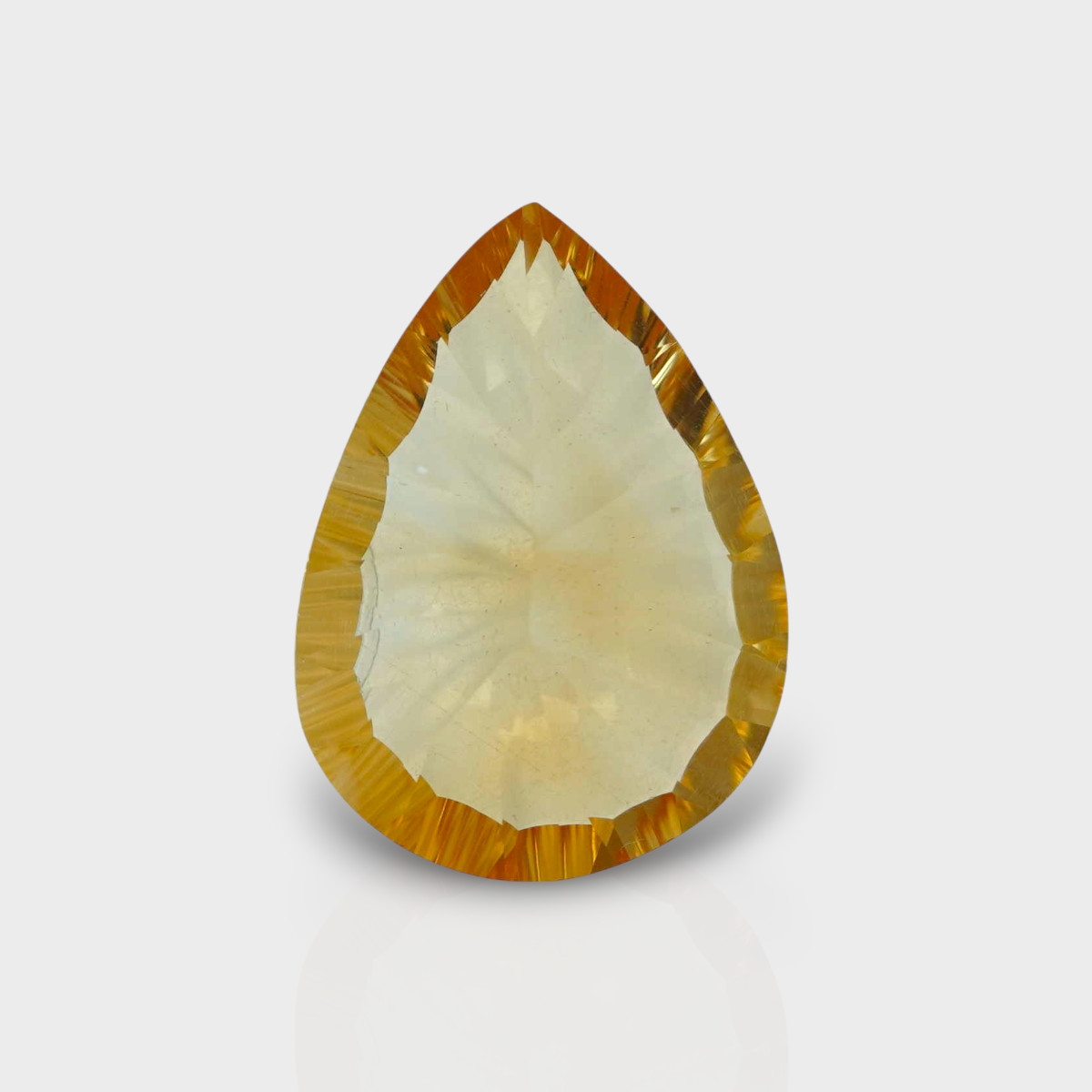 Buy This "AA+" Grade 19.74x14.33mm Concave Cut Pear Shape Natural Citrine (Heated) Loose Gemstone. You Will Receive 1 Pc. With a Total Weight of 10.61 Cts.. This Citrine Stone is Originated From Brazil and Masterfully Handcrafted by The Experienced Artisans of Jaipur (India).