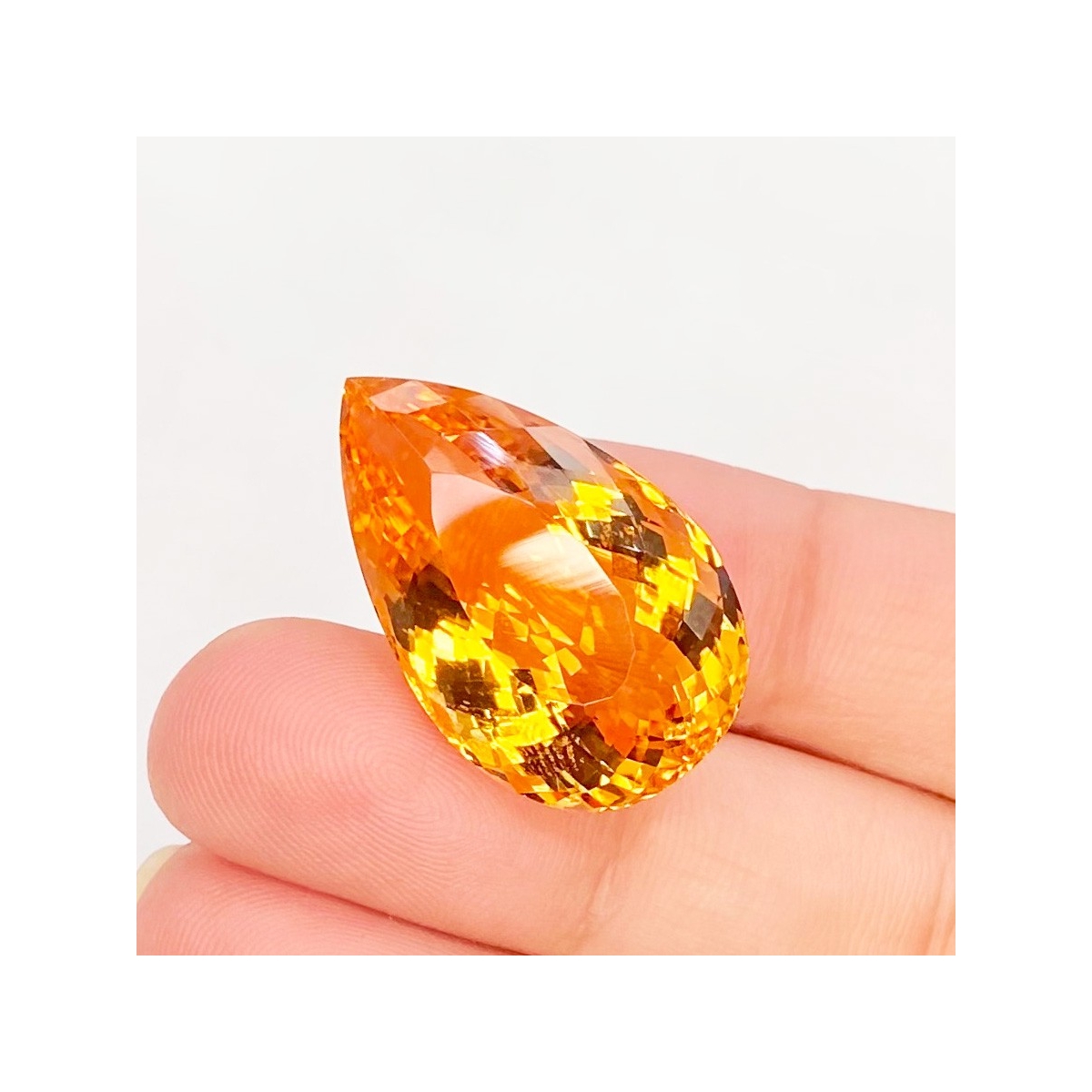 Buy This "AAA" Grade 26x16mm Faceted Pear Shape Natural Citrine (Heated) Loose Gemstone. You Will Receive 1 Pc. With a Total Weight of 25.40 Cts.. This Citrine Stone is Originated From Brazil and Masterfully Handcrafted by The Experienced Artisans of Jaipur (India).