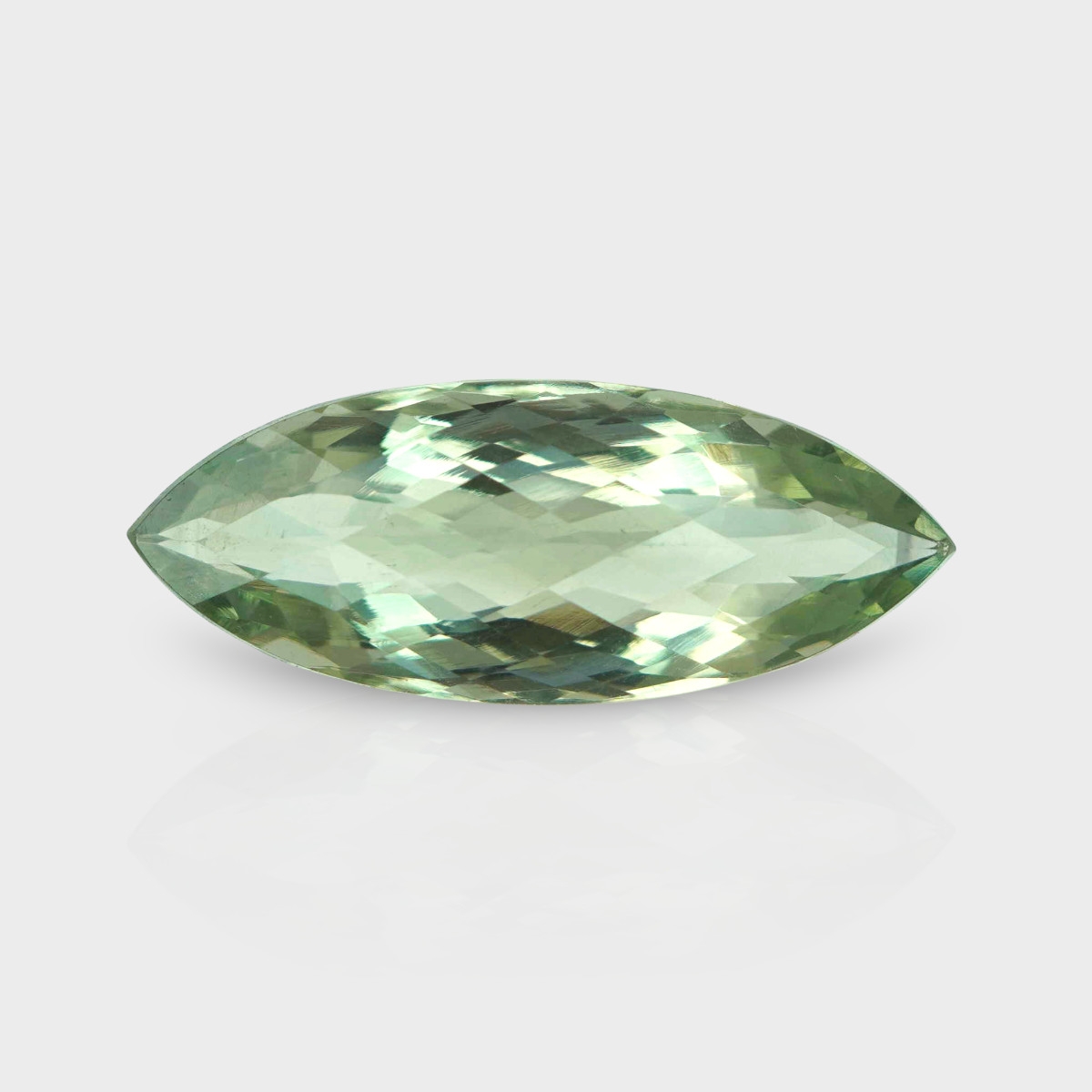Buy This "AAA" Grade 28.5x11.5mm Checkerboard Marquise Shape Natural Green Amethyst (Heated) Loose Gemstone. You Will Receive 1 Pc. With a Total Weight of 16.54 Cts.. This Green Amethyst Stone is Originated From Brazil and Masterfully Handcrafted by The Experienced Artisans of Jaipur (India).