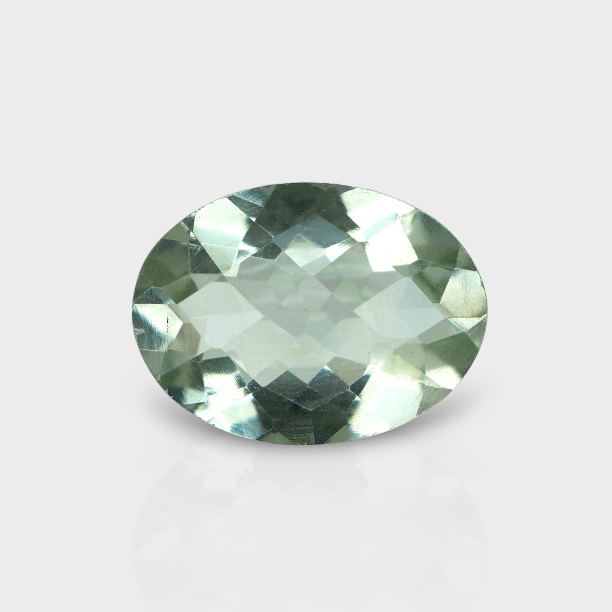 Buy This "AAA" Grade 13.08x11.76mm Checkerboard Oval Shape Natural Green Amethyst (Heated) Loose Gemstone. You Will Receive 1 Pc. With a Total Weight of 9.65 Cts.. This Green Amethyst Stone is Originated From Brazil and Masterfully Handcrafted by The Experienced Artisans of Jaipur (India).