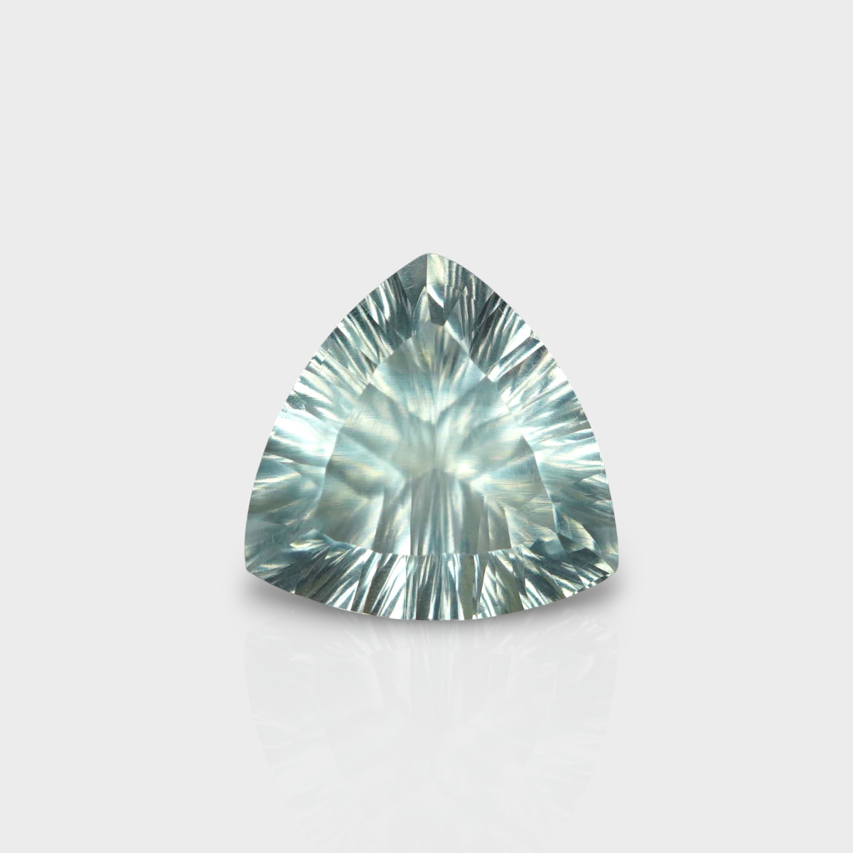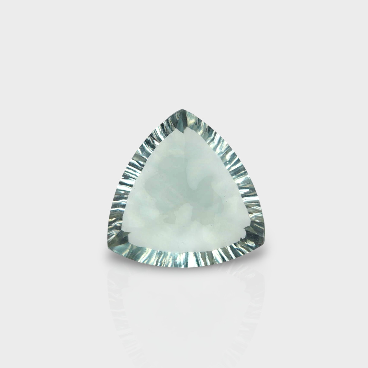 Buy This "AAA" Grade 14mm Concave Cut Trillion Shape Natural Green Amethyst (Heated) Loose Gemstone. You Will Receive 1 Pc. With a Total Weight of 7.07 Cts.. This Green Amethyst Stone is Originated From Brazil and Masterfully Handcrafted by The Experienced Artisans of Jaipur (India).