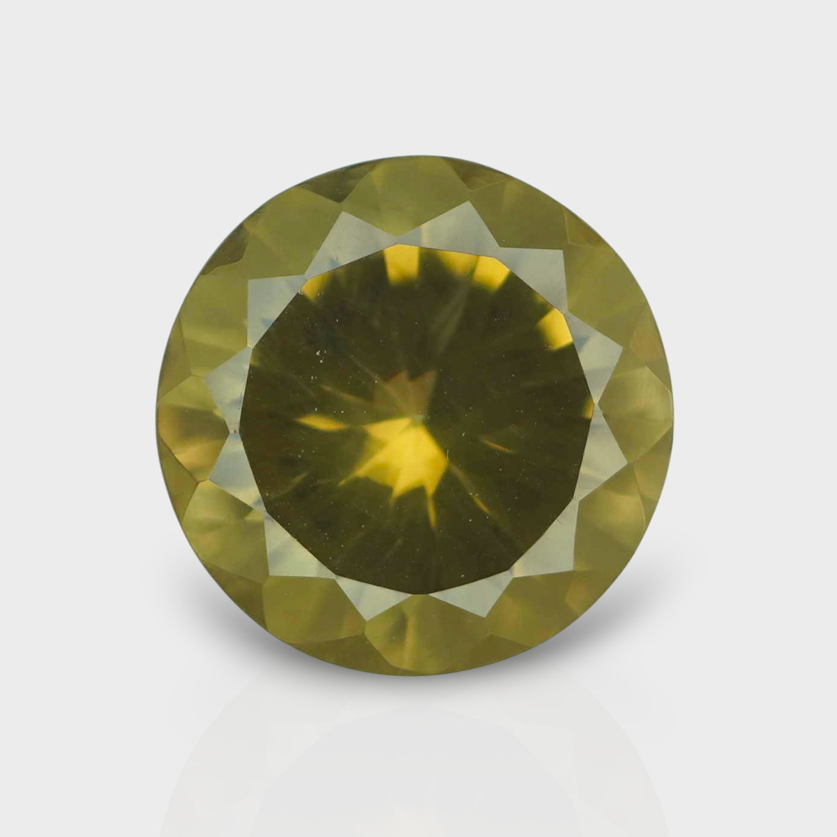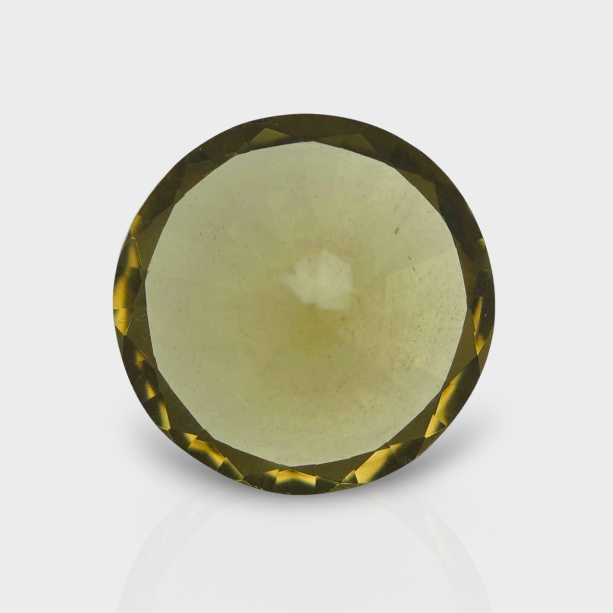 Buy This "AAA" Grade 16.38mm Diamond Cut Round Shape Natural Olive Quartz (Heated) Loose Gemstone. You Will Receive 1 Pc. With a Total Weight of 14.93 Cts.. This Olive Quartz Stone is Originated From Brazil and Masterfully Handcrafted by The Experienced Artisans of Jaipur (India).