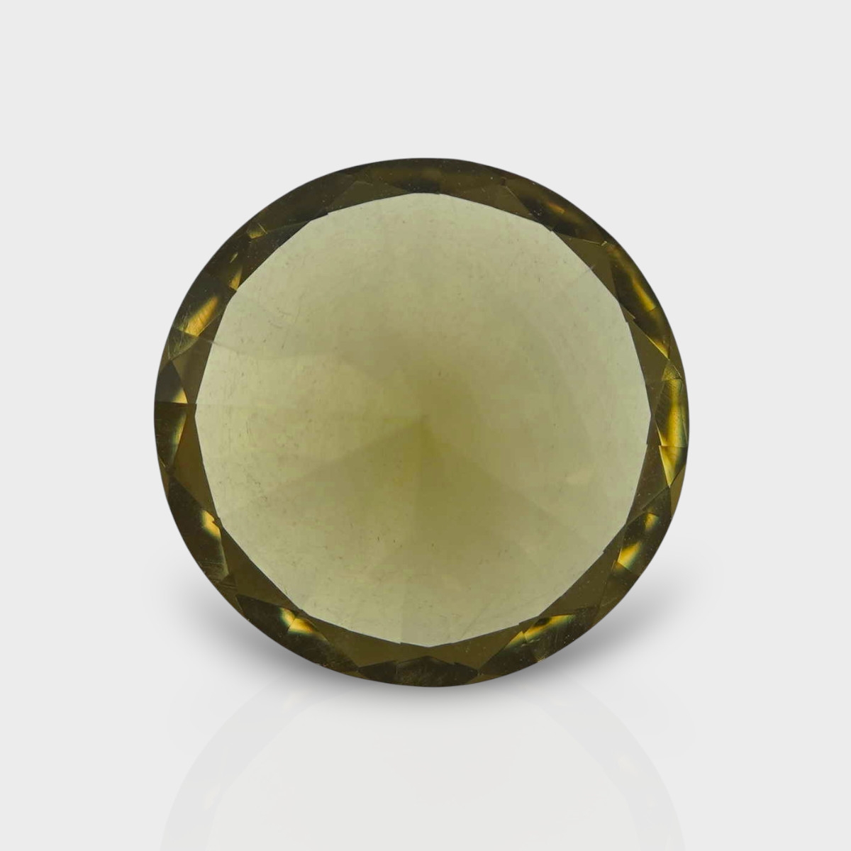 Buy This "AAA" Grade 16.55mm Diamond Cut Round Shape Natural Olive Quartz (Heated) Loose Gemstone. You Will Receive 1 Pc. With a Total Weight of 15.30 Cts.. This Olive Quartz Stone is Originated From Brazil and Masterfully Handcrafted by The Experienced Artisans of Jaipur (India).
