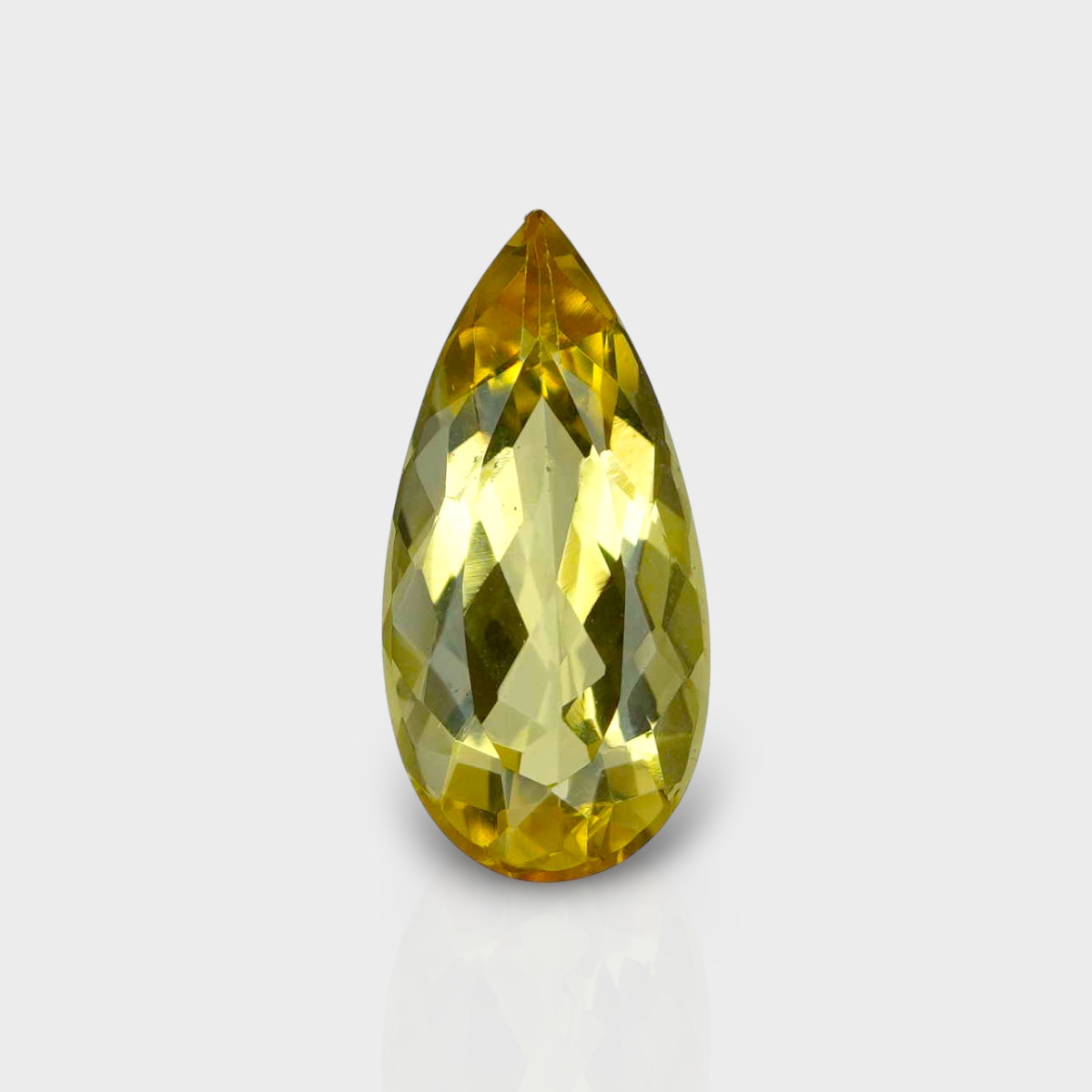 Buy This "AAA" Grade 15x7.5mm Faceted Pear Shape Natural Yellow Beryl (Heated) Loose Gemstone. You Will Receive 1 Pc. With a Total Weight of 2.88 Carat. This Yellow Beryl Stone is Originated From Brazil and Masterfully Handcrafted by The Experienced Artisans of Jaipur (India).