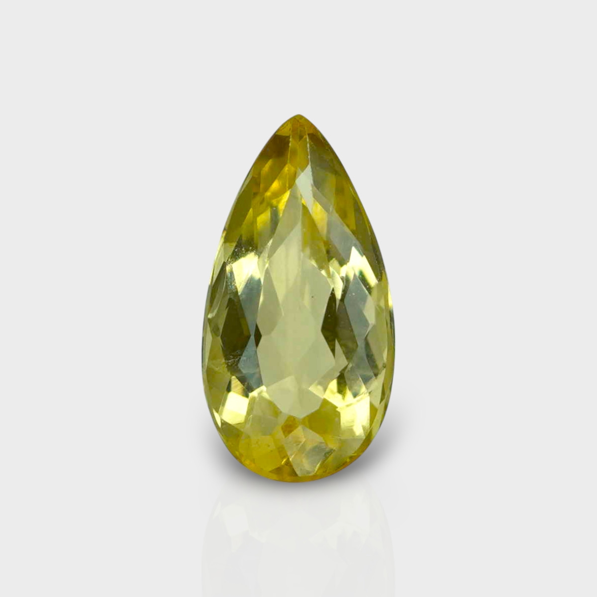 Buy This "AA+" Grade 13x7mm Faceted Pear Shape Natural Yellow Beryl (Heated) Loose Gemstone. You Will Receive 1 Pc. With a Total Weight of 2.62 Carat. This Yellow Beryl Stone is Originated From Brazil and Masterfully Handcrafted by The Experienced Artisans of Jaipur (India).
