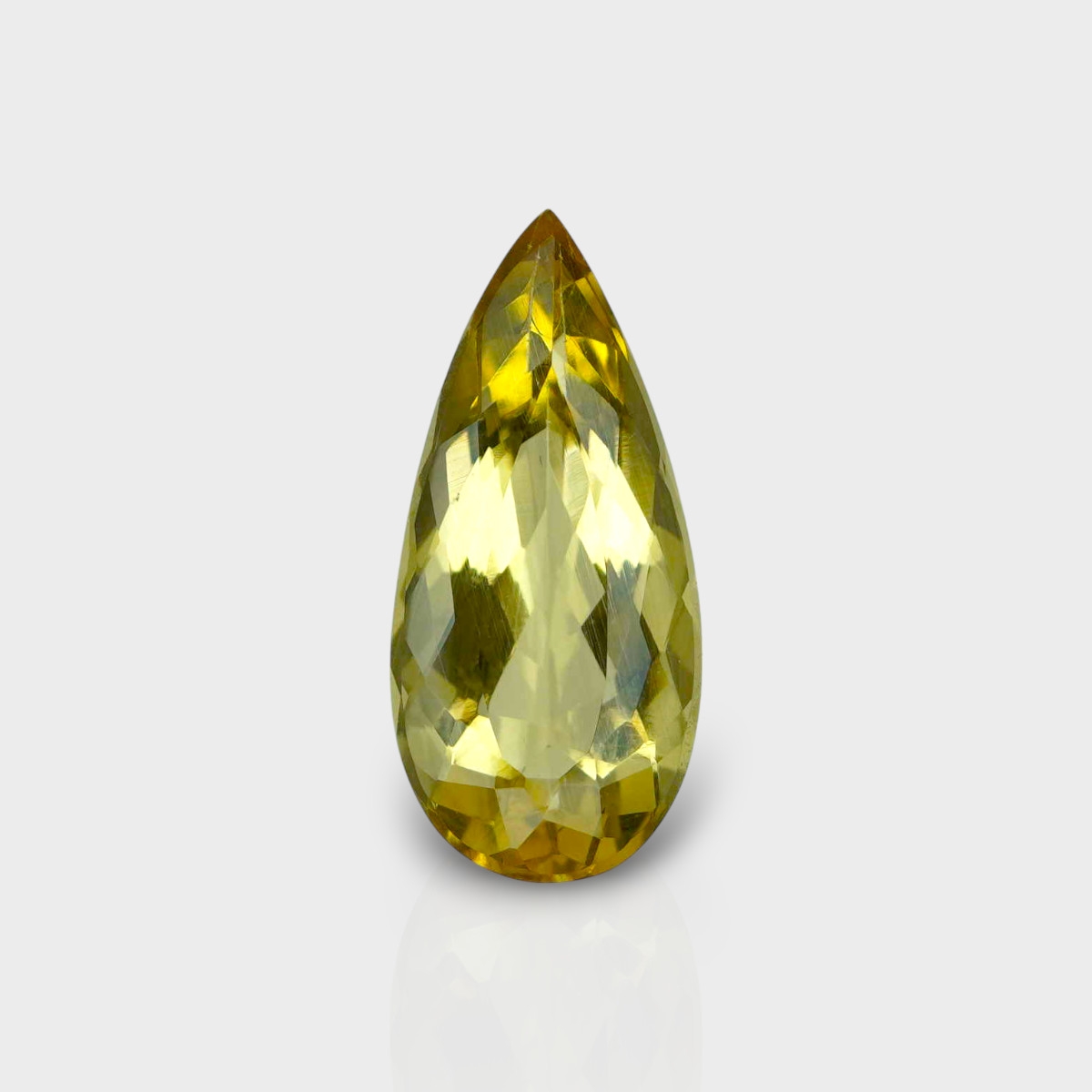 Buy This "AAA" Grade 18x8.5mm Faceted Pear Shape Natural Yellow Beryl (Heated) Loose Gemstone. You Will Receive 1 Pc. With a Total Weight of 4.3 Carat. This Yellow Beryl Stone is Originated From Brazil and Masterfully Handcrafted by The Experienced Artisans of Jaipur (India).